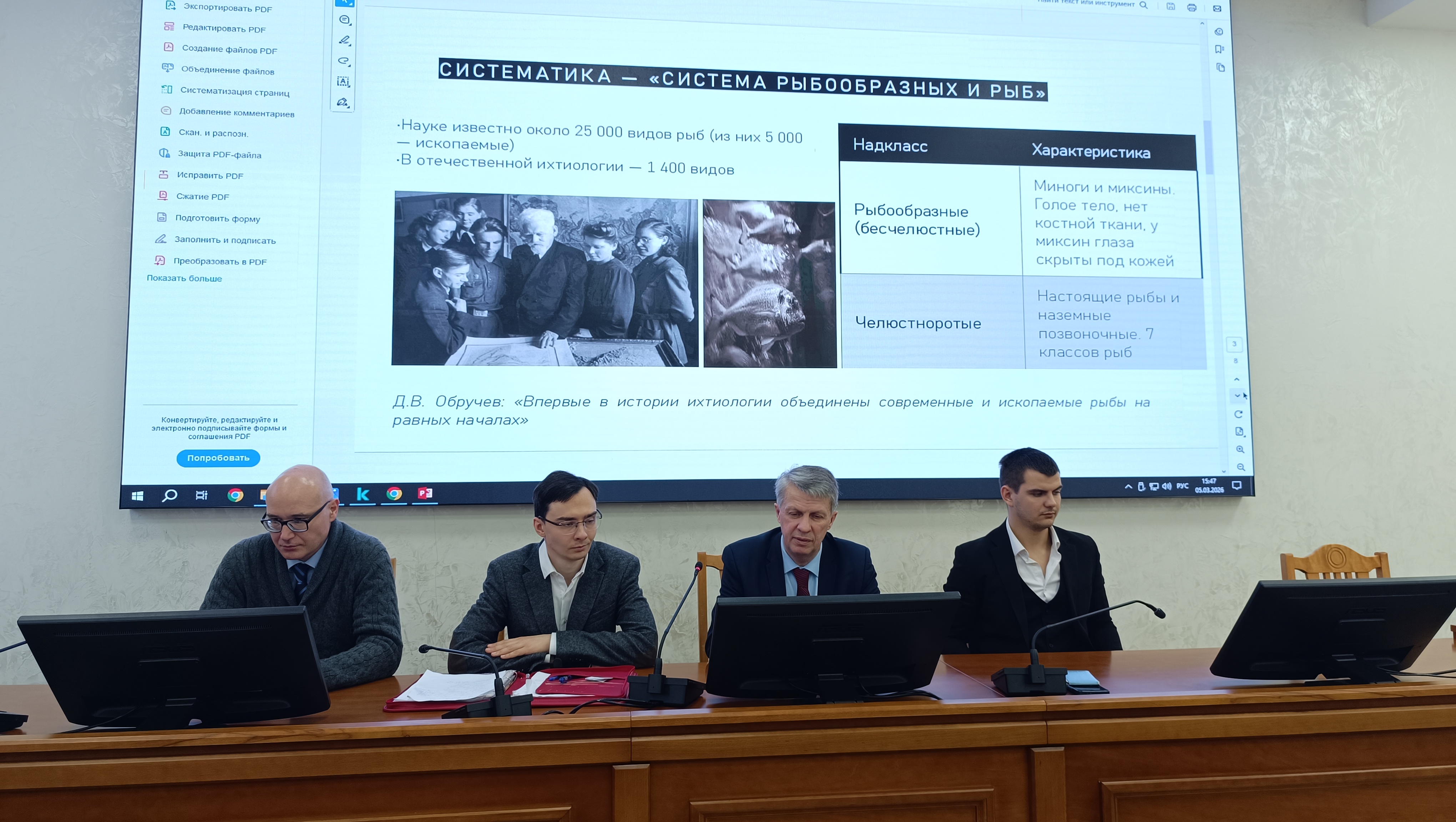 5 марта в Точке кипения «Тимирязевка», в зале «Вавилов» состоялся круглый стол «Лев Берг (1876-1950): ихтиология во славу России». Мероприятие объединило преподавателей и студентов, интересующихся историей отечественной науки, и стало важной частью патриотических инициатив кафедры, направленных на популяризацию наследия российских ученых.