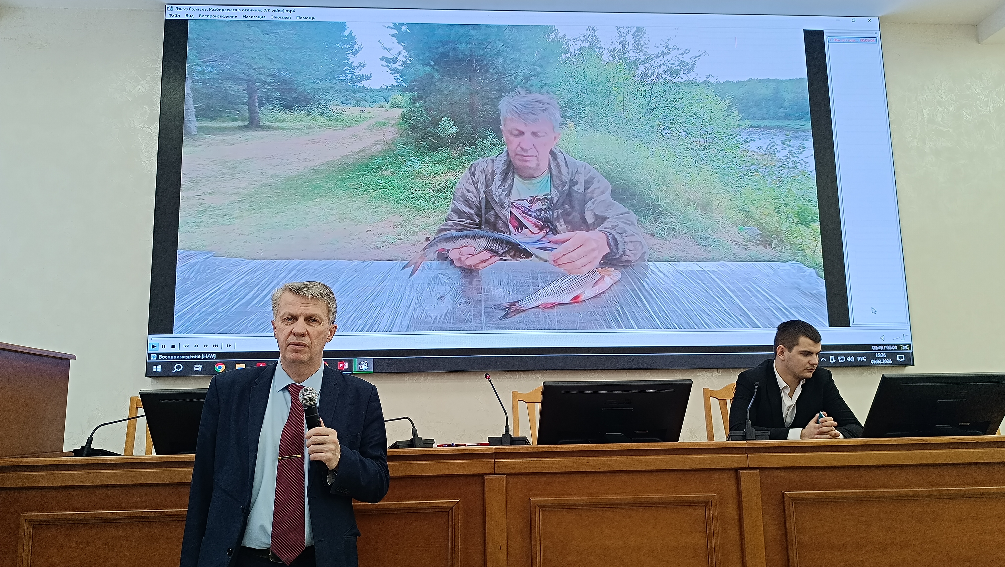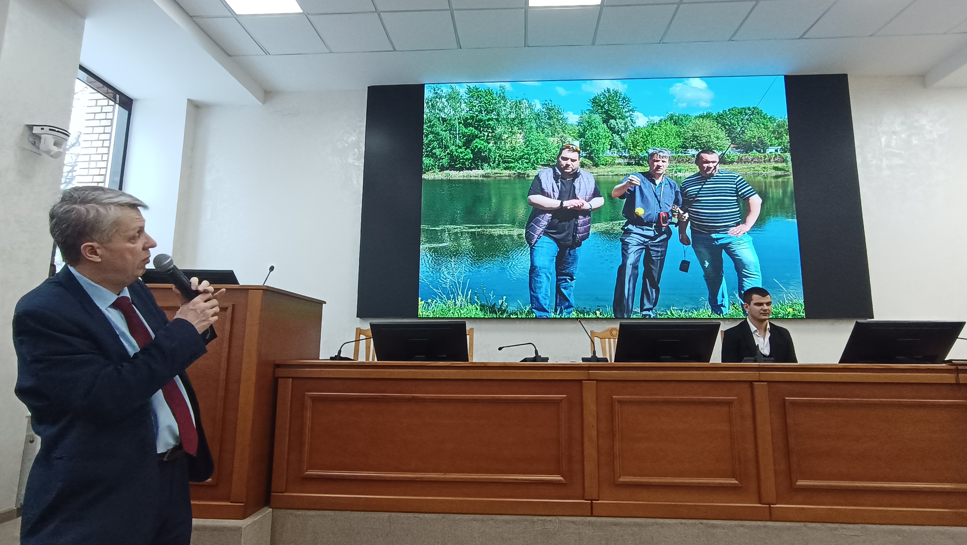 О деятельности нового студенческого объединения рассказал председатель СНО «Налим» Максим Камышанский. Он представил основные направления работы сообщества и поделился планами на ближайшее будущее, отметив важность вовлечения студентов в исследовательскую деятельность. Председатель СНО затронул тему отличия любительской рыбалки от научных исследований, отметив, что для будущих ихтиологов важно не только мастерство рыболова, но и понимание биологии видов, миграций рыб и экологического состояния водоемов.