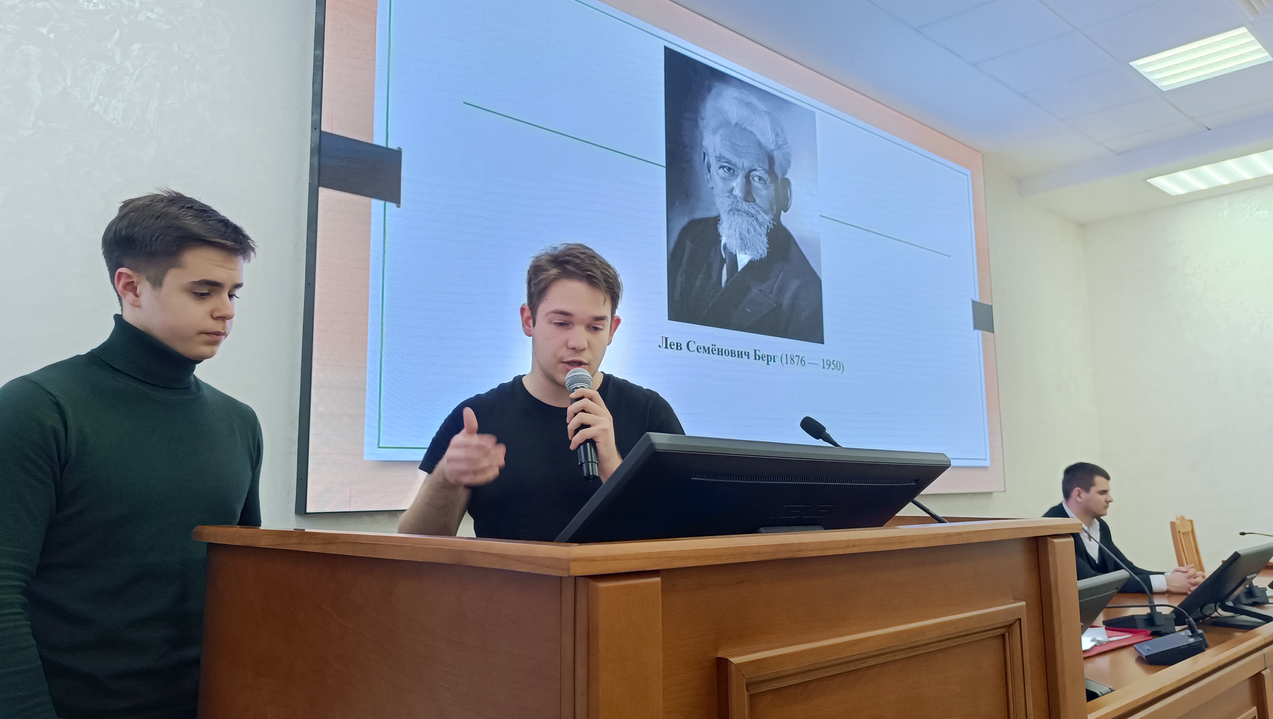 Андрей Кузнецов и Артем Галимов (ДЗ-04-25) выступили с совместным докладом, посвященным изучению Львом Семеновичем Аральского моря.