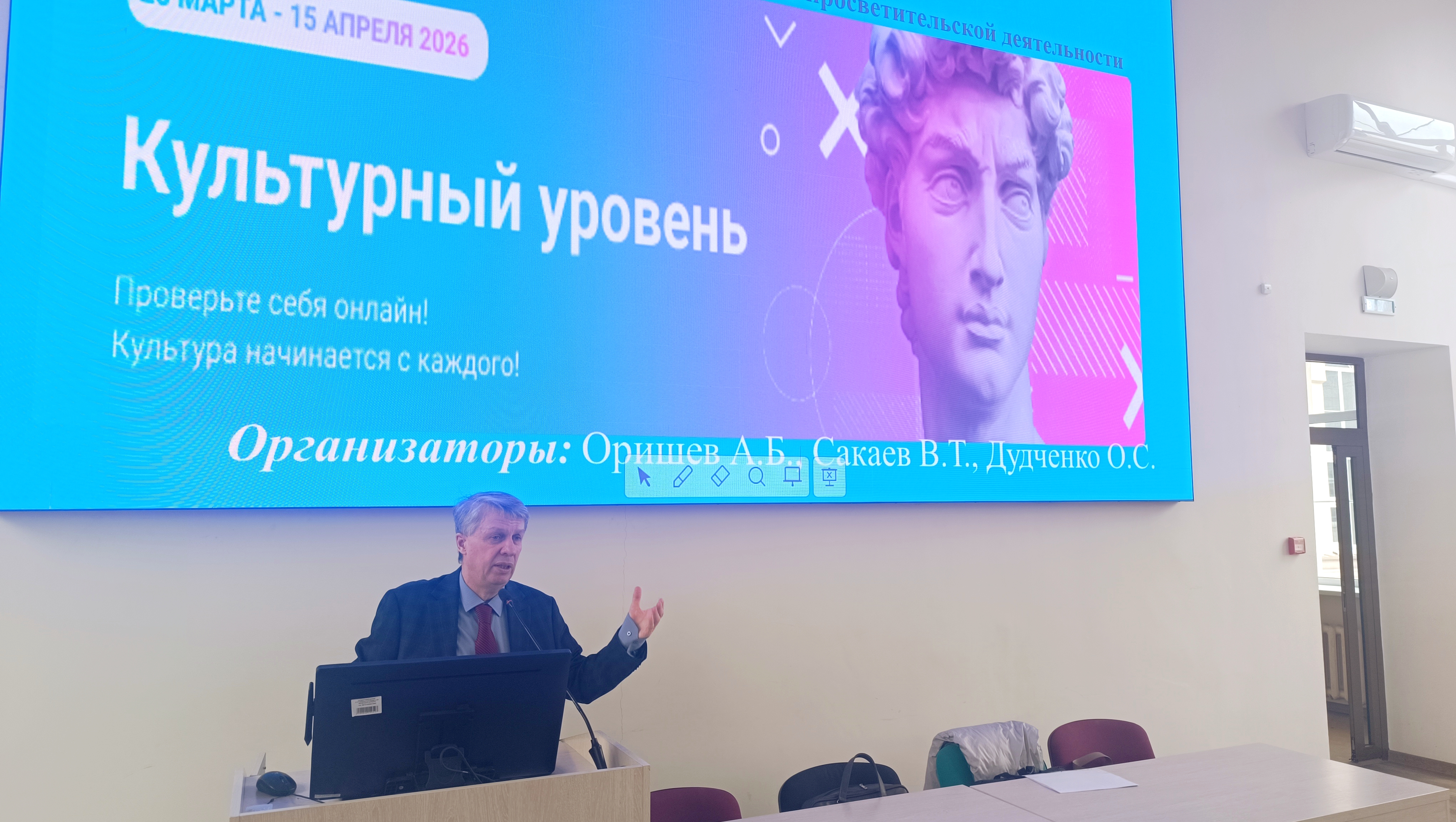 06 Апрель / 20266 апреля 2026 г. заведующим кафедрой истории Института экономики и управления АПК, доктором исторических наук А.Б. Оришевым, доцентами кафедры истории В.Т. Сакаевым и О.С. Дудченко среди студентов Института экономики и управления АПК, Института зоотехнии и биологии и Института механики и энергетики имени В.П. Горячкина было проведено патриотическое мероприятие – олимпиада «Культурный уровень».