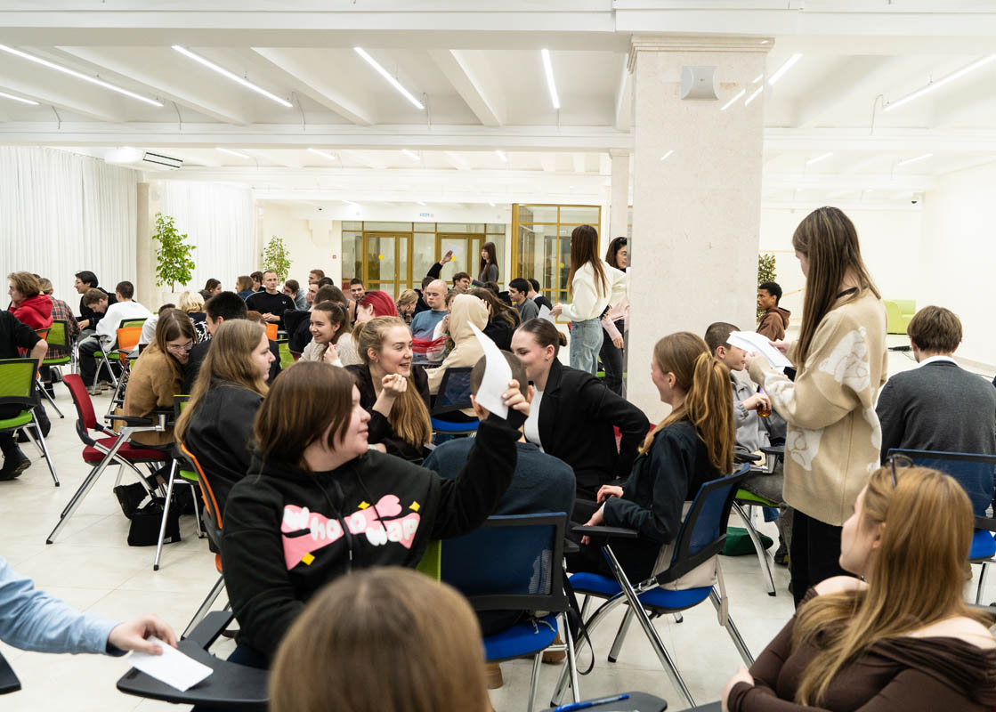 В «Точке кипения» 29-го учебного корпуса прошла четвёртая квиз-викторина, организованная преподавателями кафедры физики для студентов инженерных направлений РГАУ‑МСХА имени К.А. Тимирязева. Мероприятие стало доброй традицией и проводится каждый семестр — по просьбам студентов, с большим энтузиазмом участвующих в интеллектуальных соревнованиях.