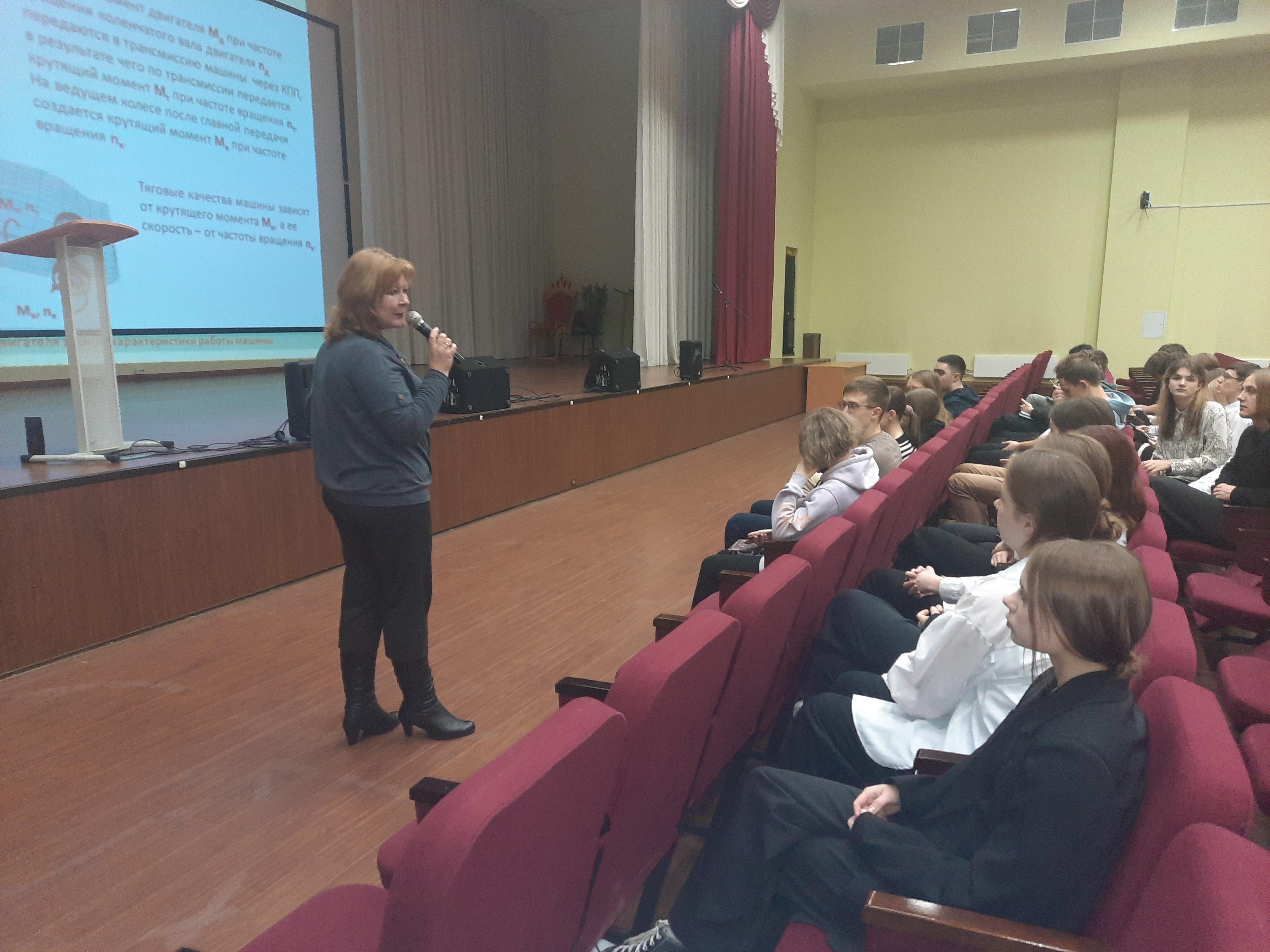 09 Февраль / 2023Перевозчикова Н.В., зам. директора по практике и профориентационной работе, доцент кафедры тракторов и автомобилей прочитала школьникам 10 и 11 классов лекцию на тему «Двигатели внутреннего сгорания» в МБОО СОШ № 10 г. Лобня. Ребята смогли узнать особенности принципа действия ДВС в зависимости от рода применяемого топлива, немного познакомиться с конструкцией двигателя.