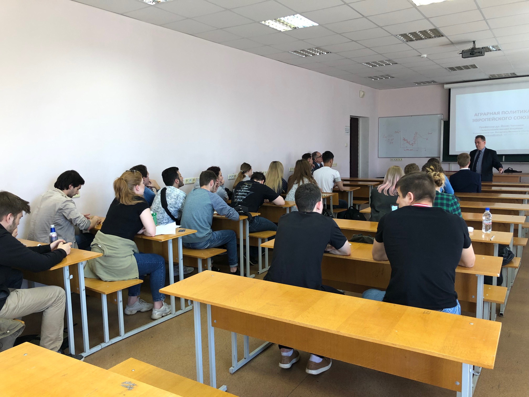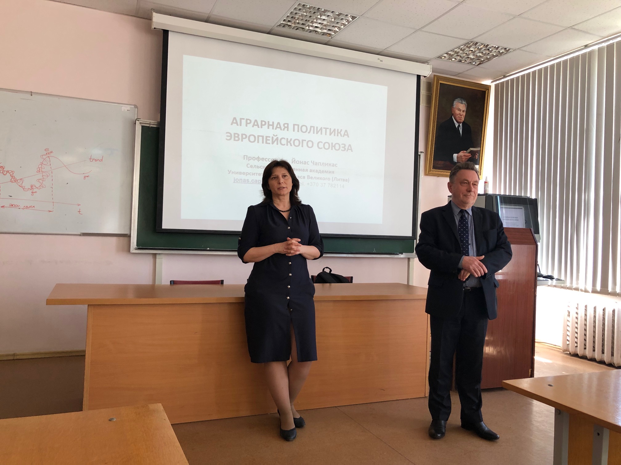 17 мая на кафедре «Мировая экономика» состоялась встреча с делегатами из Университета Витовта Великого, на которой один из приезжих профессоров прочитал лекцию на тему "Аграрная политика Европейского Союза".