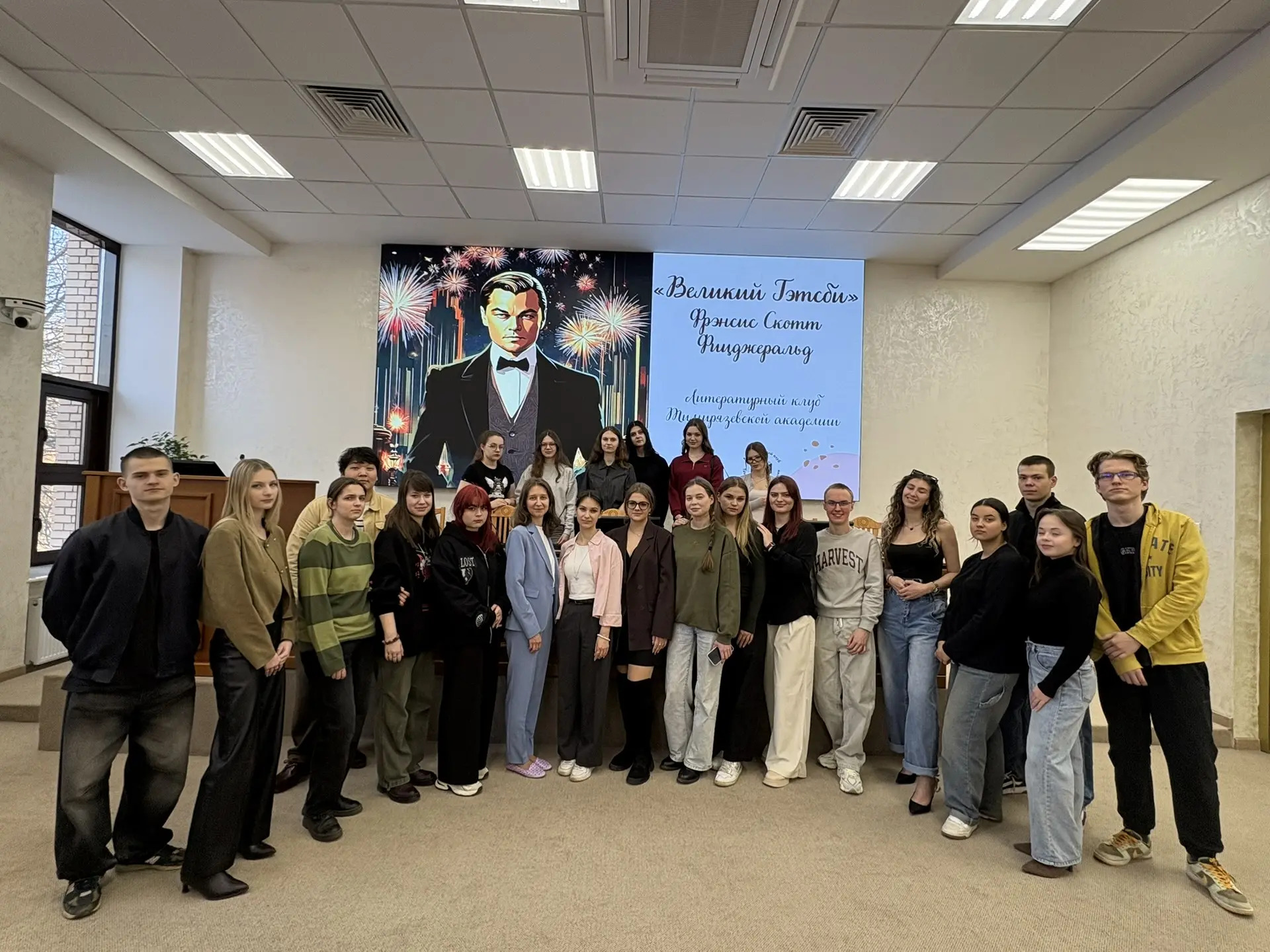 И сейчас Литературный клуб, действующий на базе кафедры связей с общественностью, речевой коммуникации и туризма Института экономики и управления АПК, продолжает славную традицию, начатую давно в рамках литобъединений, прививая интерес к художественному творчеству современным молодым авторам и читателям. Ведется большая и интересная работа в Литклубе, 26 марта состоялась встреча членов клуба, посвященная роману «Великий Гэтсби» Ф.С. Фицджеральда, классика американской литературы. Собрались ребята, объединенные одной страстью — любовью к литературе. Они погрузились в атмосферу «ревущих» 1920-х гг., эпоху джаза и ар-деко. Встреча завершилась викториной по тексту романа и просмотром кинофрагментов из экранизации 2013 года.