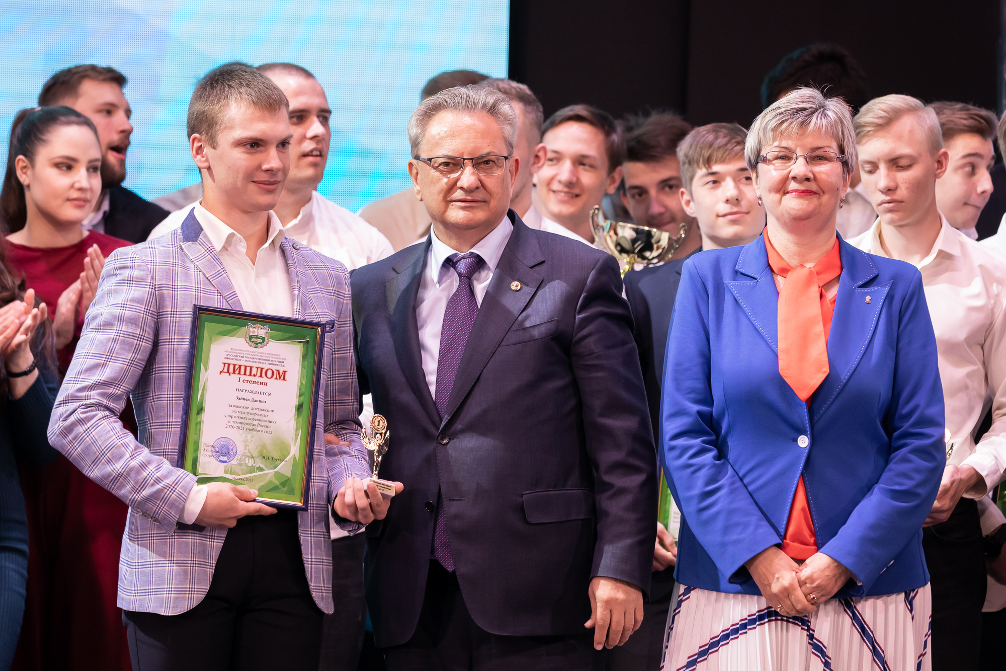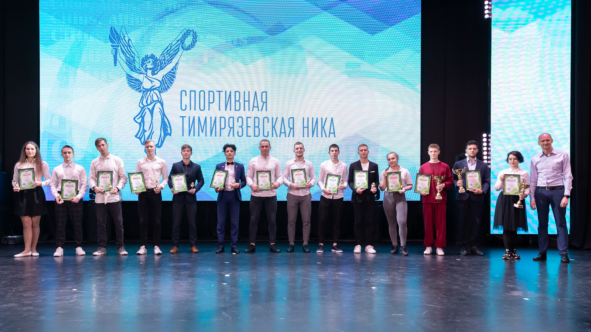 Самая престижная номинация называлась «Спорт высших достижений». Ее победителями стали чемпион мира в командном зачете по фехтованию среди юниоров, мастер спорта, студент Института агробиотехнологий Алексей Удовиченко; чемпионка мира по полиатлону, мастер спорта, магистрант Института садоводства и ландшафтной архитектуры Анастасия Чистякова, чемпион мира по полиатлону, член сборной команды России, студент Института механики и энергетики имени В.П. Горячкина Даниил Зайцев.