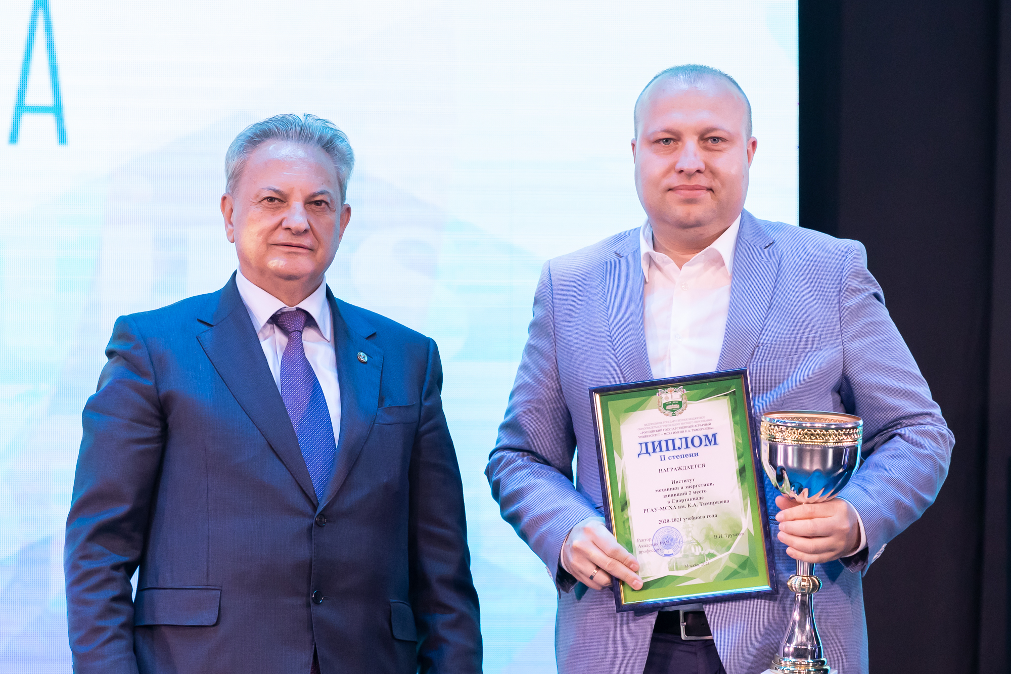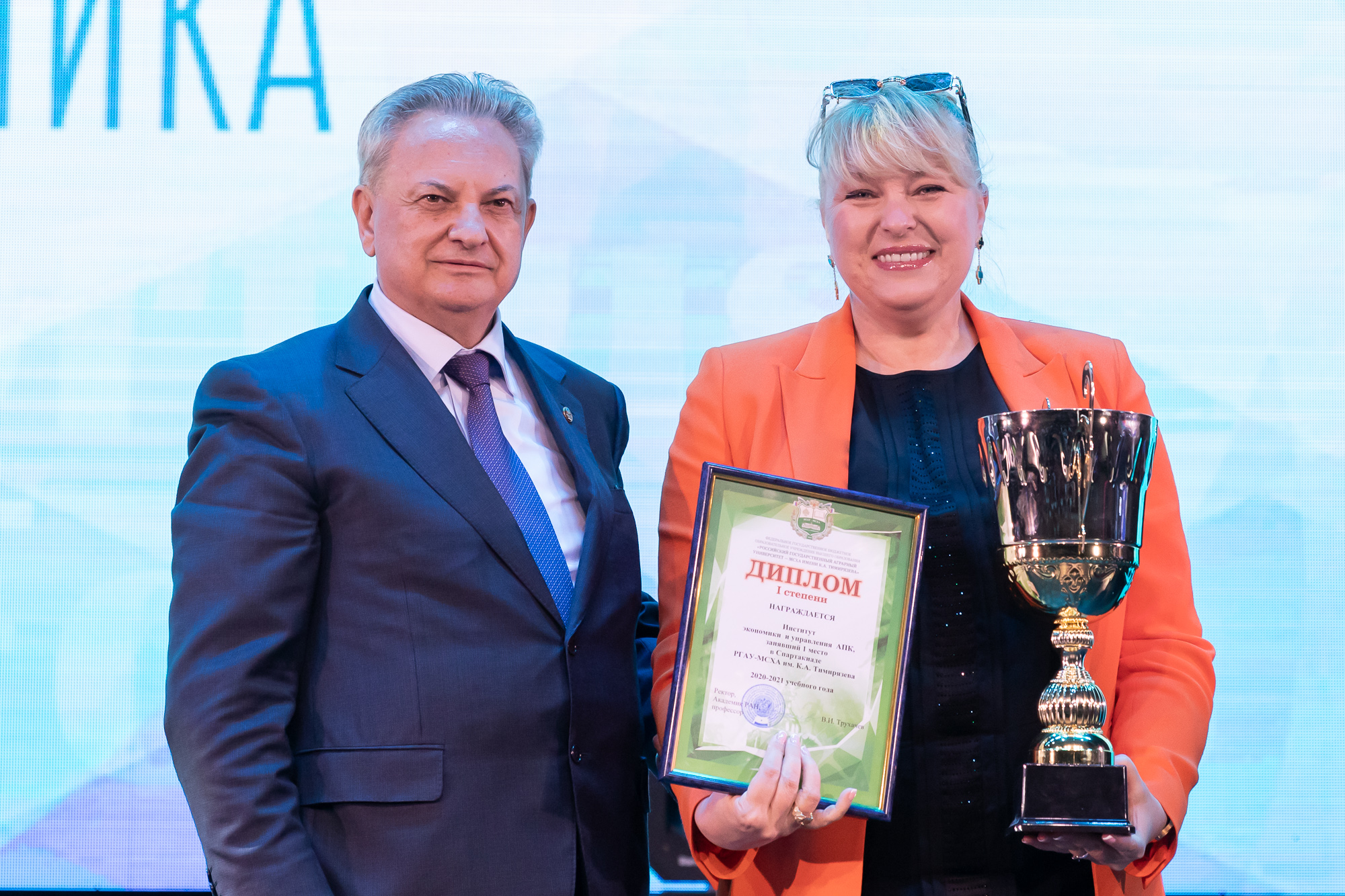 Заслуженных наград были удостоены институты-призеры завершившейся Спартакиады студентов РГАУ-МСХА имени К.А. Тимирязева. Победителем турнира стал Институт экономики и управления АПК. Переходящий Кубок чемпионов был вручен директору института Л.И. Хоружий. И.о. директора Института механики и энергетики имени В.П. Горячкина А.В. Панин получил награду за II место. Кубок за III место был вручен и.о. директора Технологического института С.А. Бредихину.