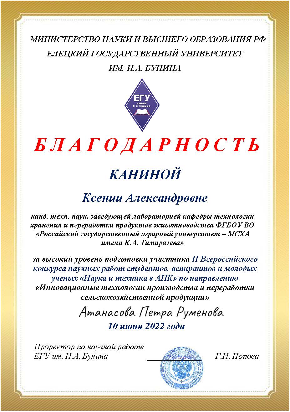 В Федеральном государственном бюджетном образовательном учреждении высшего образования «ФГБОУ ВО «Елецкий государственный университет им. И.А. Бунина» проходил II Всероссийский конкурс научных работ студентов, аспирантов и молодых ученых «Наука и техника в АПК» по направлению «Инновационные технологии производства и переработки сельскохозяйственной продукции».