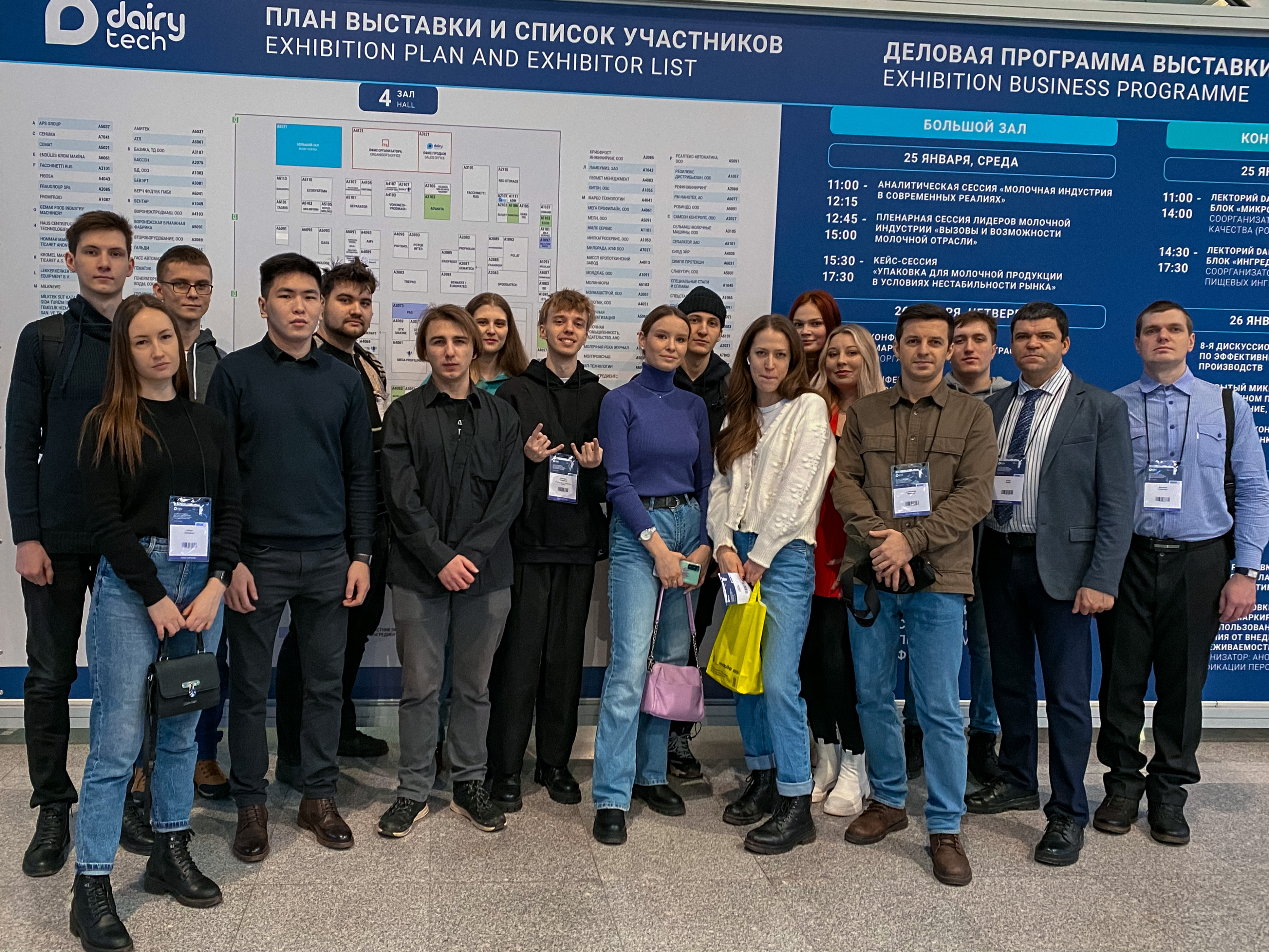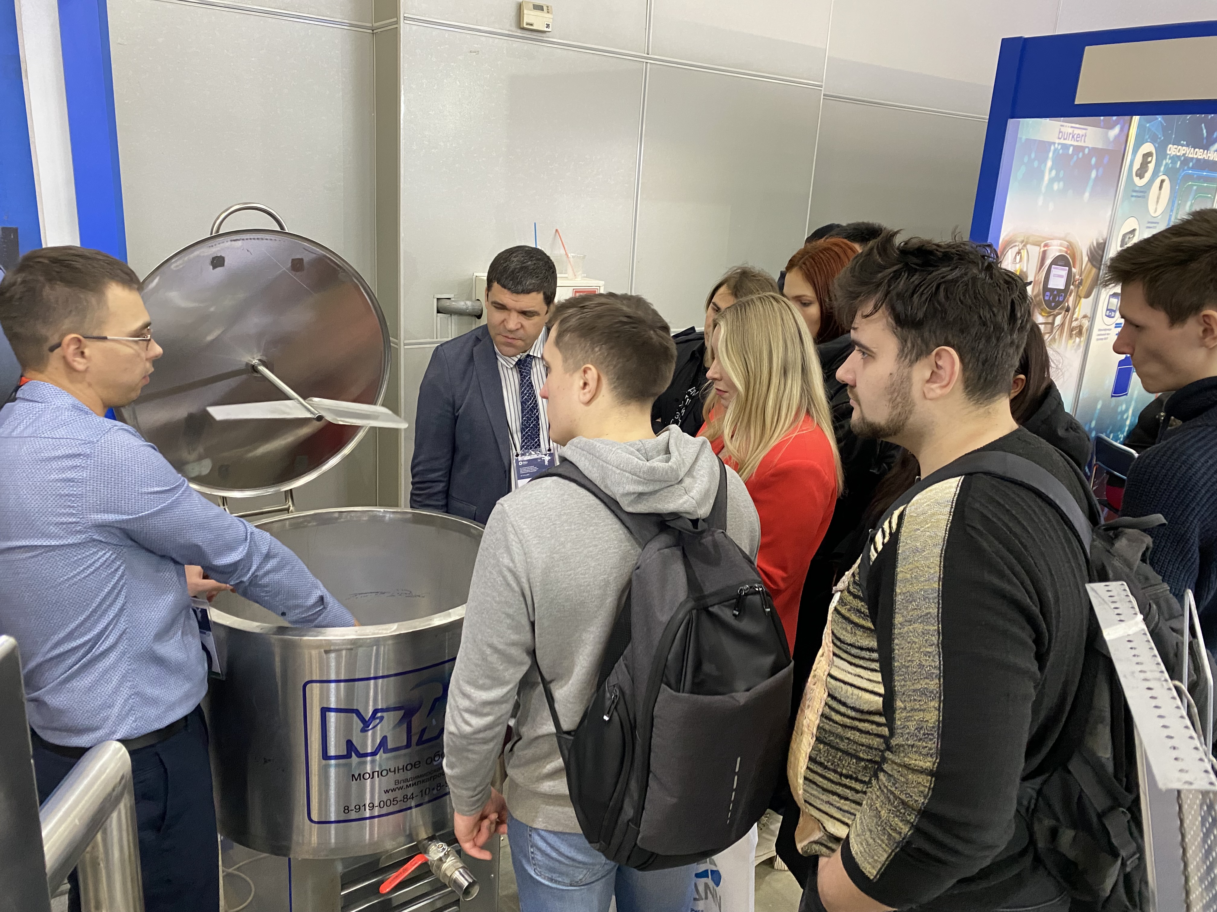 Магистры по направлению подготовки 15.04.02 «Технологические машины и оборудование» в сопровождении преподавателей кафедры «Процессы и аппараты перерабатывающих производств» и.о. заведующего кафедрой И.А. Бакина, доцента А.Н. Мартехи, доцента В.В. Торопцева, ассистента Ю.Е. Кавериной посетили знаковое событие на молочном рынке России – 21 Международную выставку оборудования для производства молока и молочной продукции.