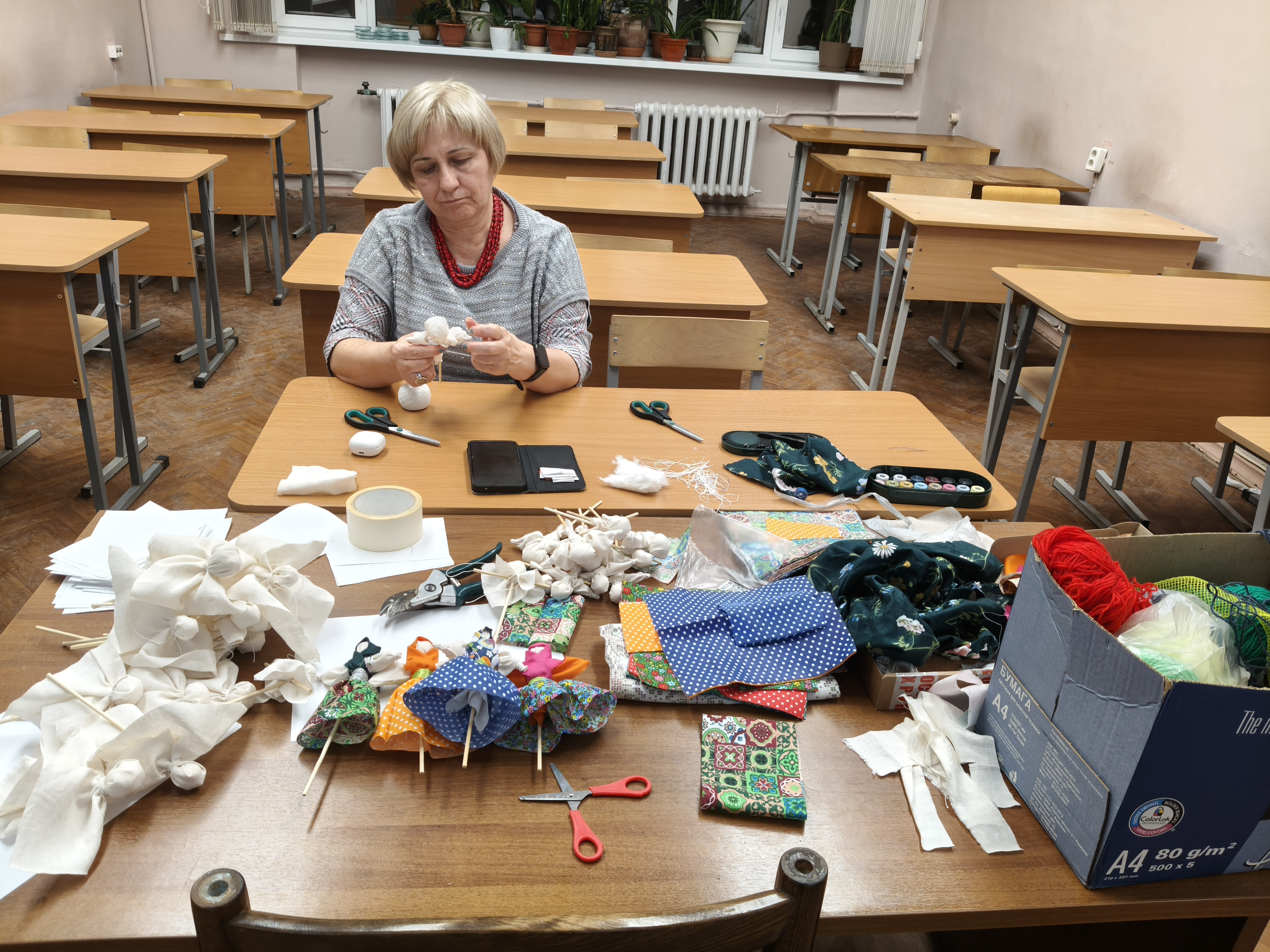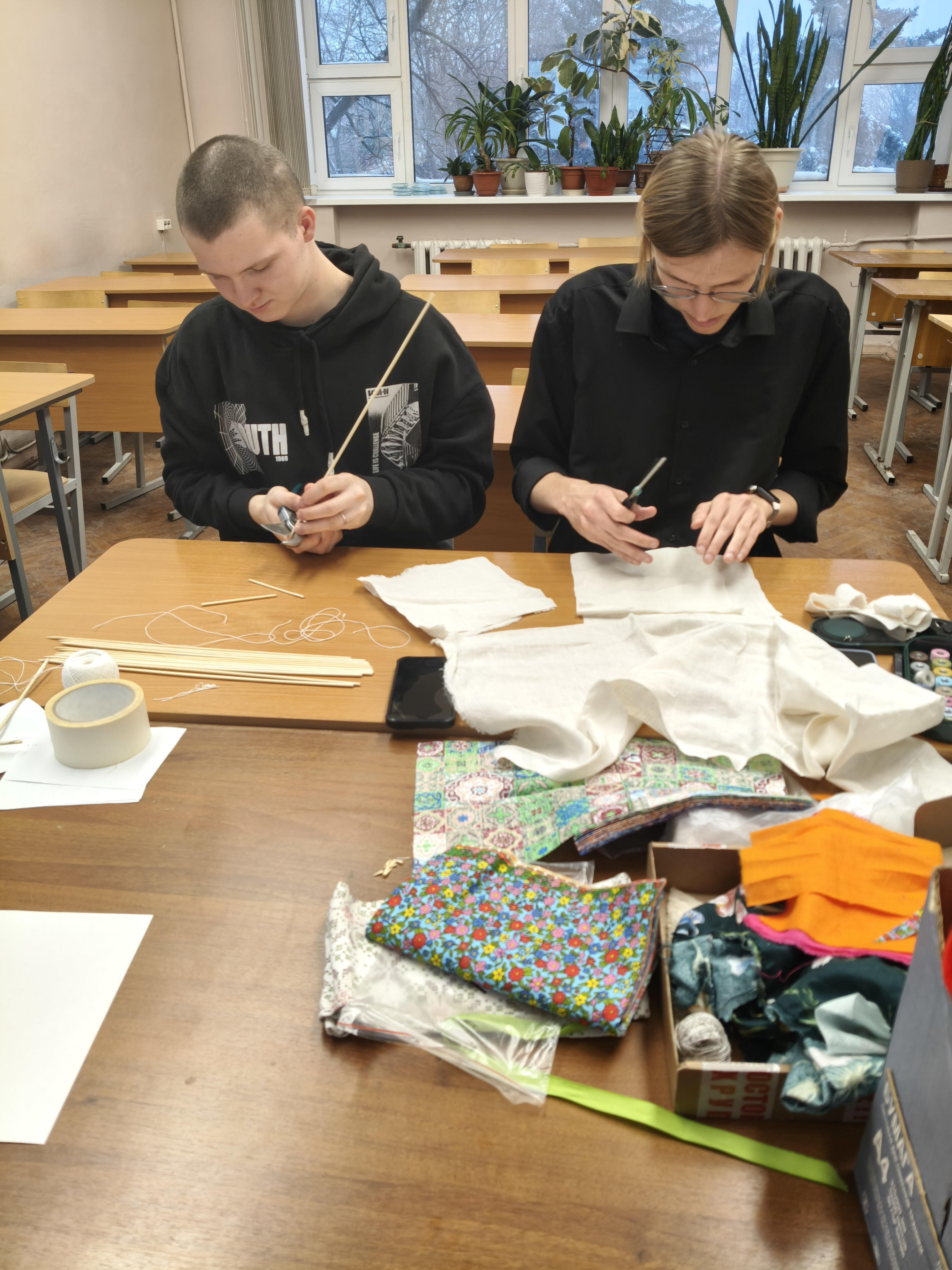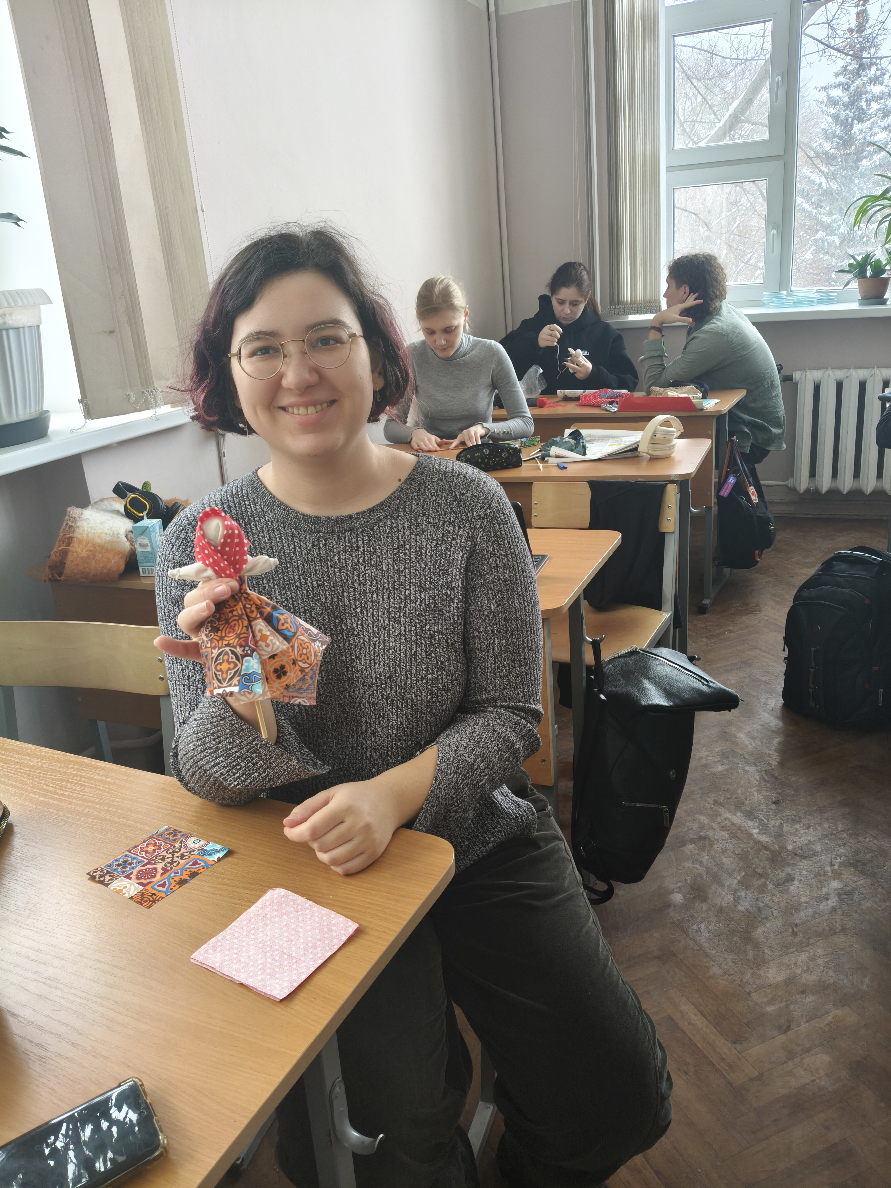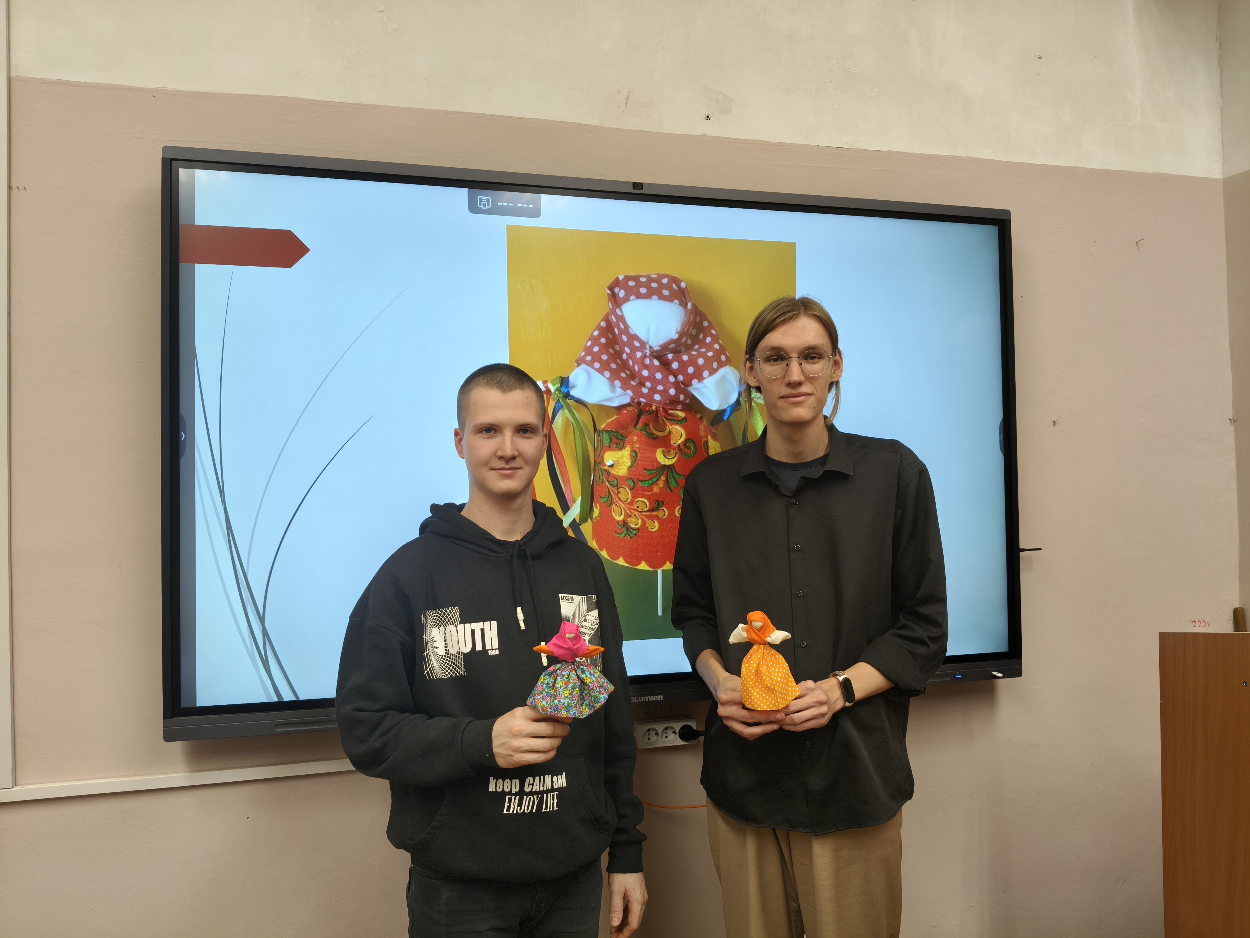 Студенты группы ДС- 02-24 и ДС-402 из цветных лоскутков изготовили каждый свою неповторимую куколку. У всех получились совершенно разные «Масленицы», хранящие тепло изготавливающих их рук.