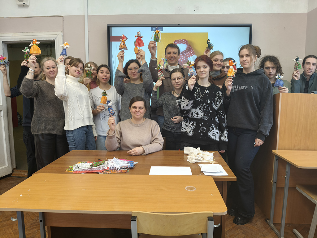 Мастер класс по созданию народных куколок маслениц провели доценты кафедры Орлова Е.Е. и Зубик И.Н.