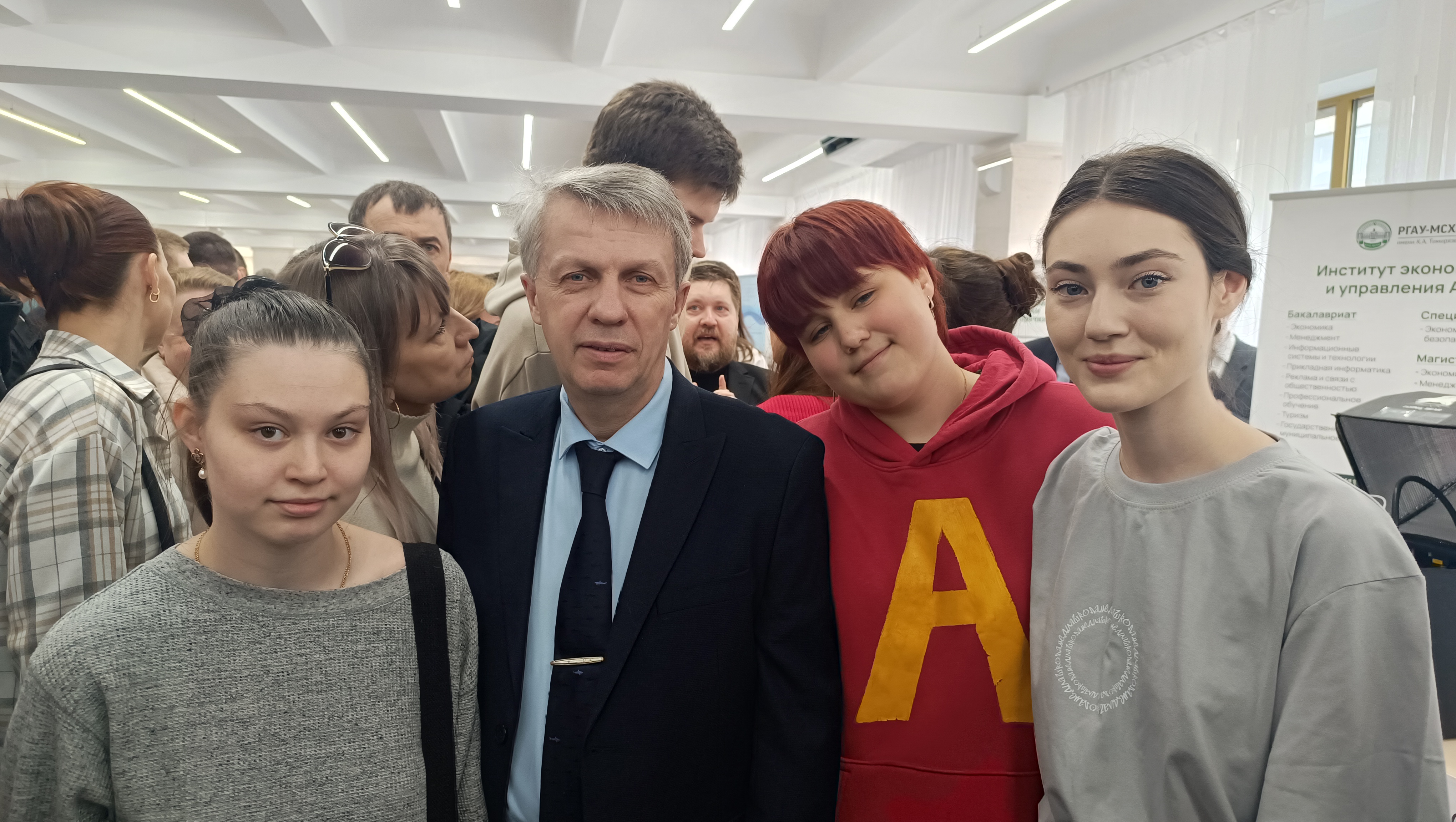 28 марта 2026 года в Российском государственном аграрном университете – МСХА имени К.А. Тимирязева прошел День открытых дверей, собравший множество потенциальных абитуриентов и их родителей. В мероприятии активное участие приняли представители кафедры истории Института экономики и управления АПК: заведующий кафедрой Александр Борисович Оришев, доцент Максим Витальевич Шерстюк и старший преподаватель Сергей Алексеевич Миронюк.