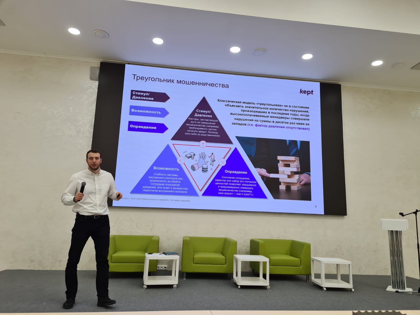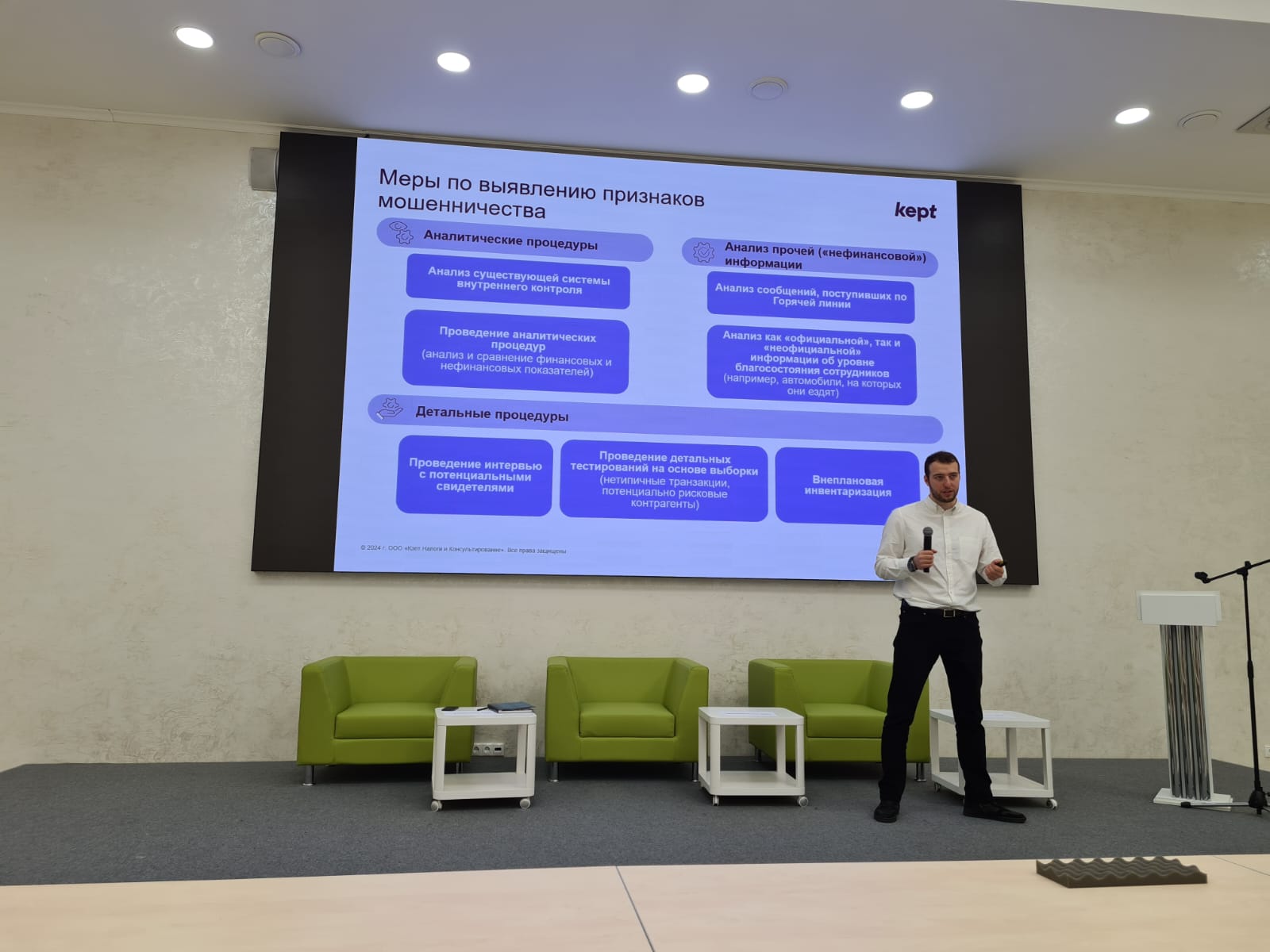 Для студентов, обучающихся по специальности 38.05.01 Экономическая безопасность и 38.03.01 Экономика Георгий Хубутия провел мастер-класс– «Противодействие мошенничеству». На нем ребята познакомитесь с опытом и экспертизой форензика в Kept, узнали, что входит в понятие мошенничества, и как проходят финансовые расследования в Kept.
