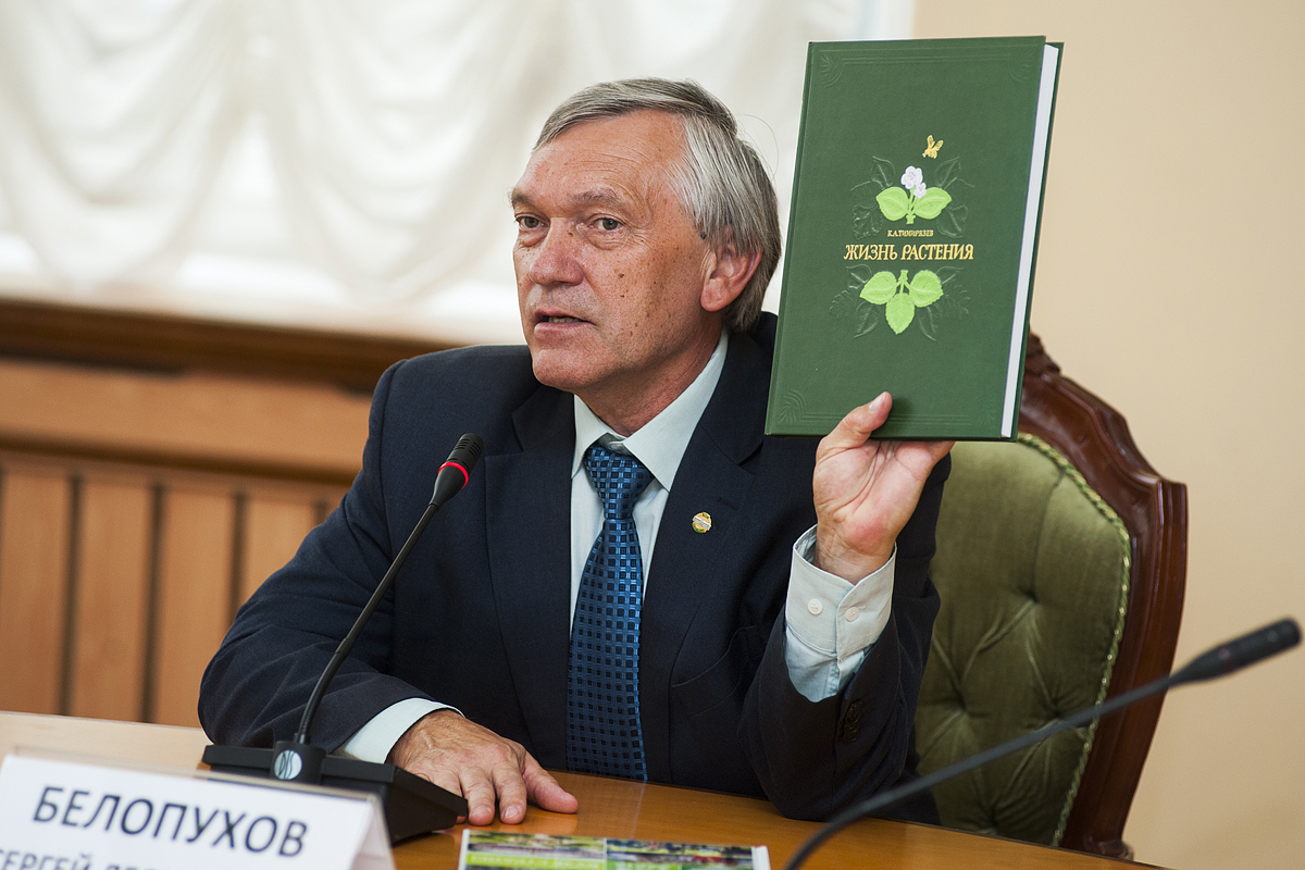 Проректор по науке и инновационному развитию Сергей Белопухов говорил о передовых научных достижениях тимирязевцев в различных областях и подарил каждому на память об академии набор из трёх книг: о жизни А. К. Тимирязева, его сочинение «Жизнь растений» и «152 факта о главном аграрном вузе страны».