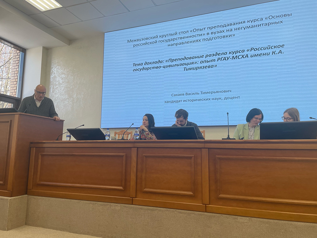 В Точке кипения Российского государственного аграрного университета – МСХА имени К.А. Тимирязева прошел Межвузовский круглый столе «Опыт преподавания курса «Основы российской государственности» в вузах на негуманитарных направлениях подготовки». Круглый стол был посвящен обобщению и критическому анализу опыта реализации этой новой дисциплины, включенной в 2023 году в учебные планы всех вузов страны согласно Указу Президента Российской Федерации.