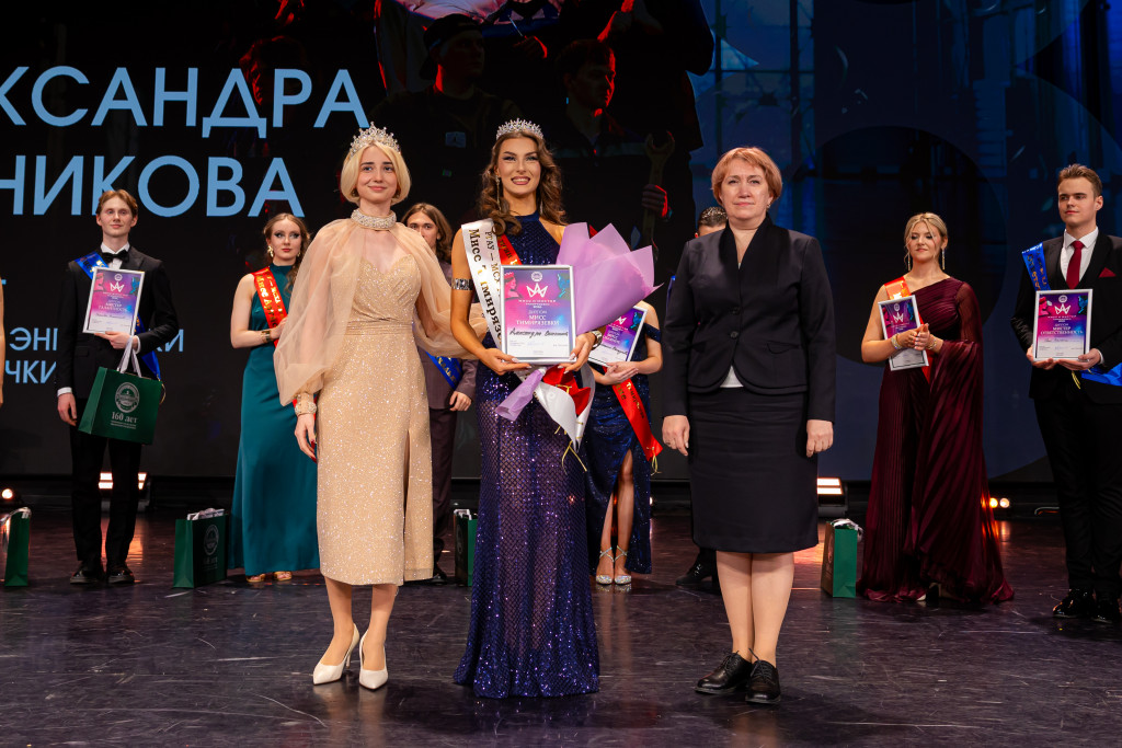 Корону победителям вручили Мисс Тимирязевка – 2025 Руслана Засеева и первый проректор – проректор по учебной работе Елена Васильевна Хохлова.