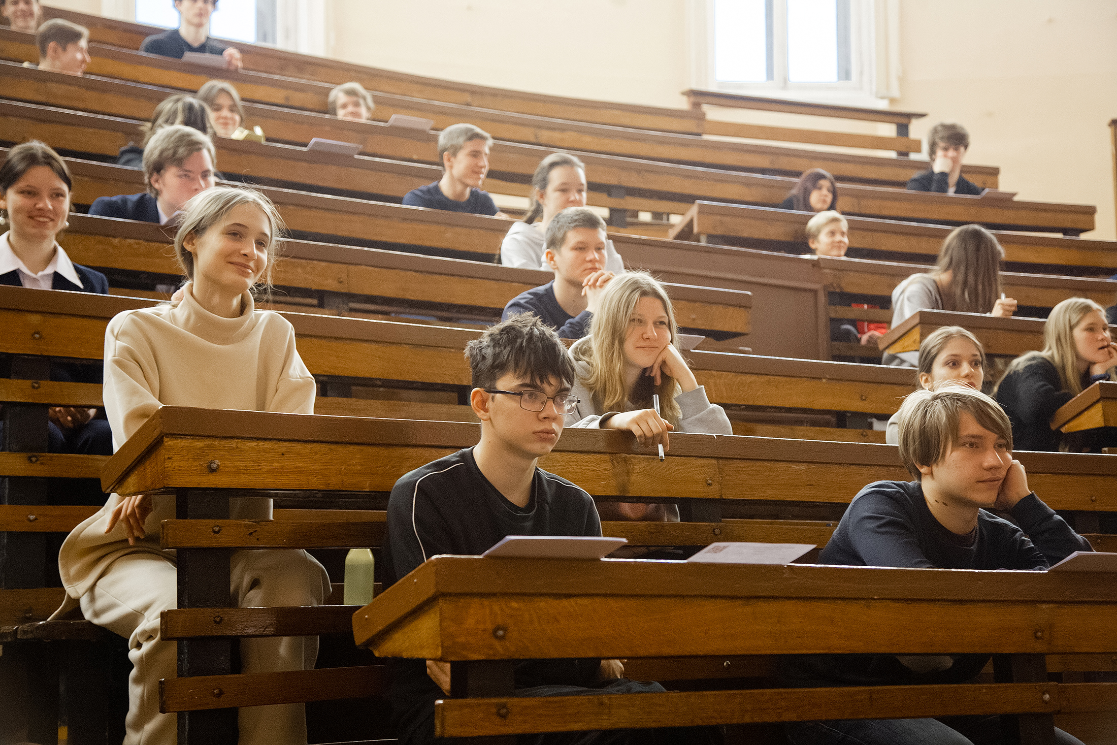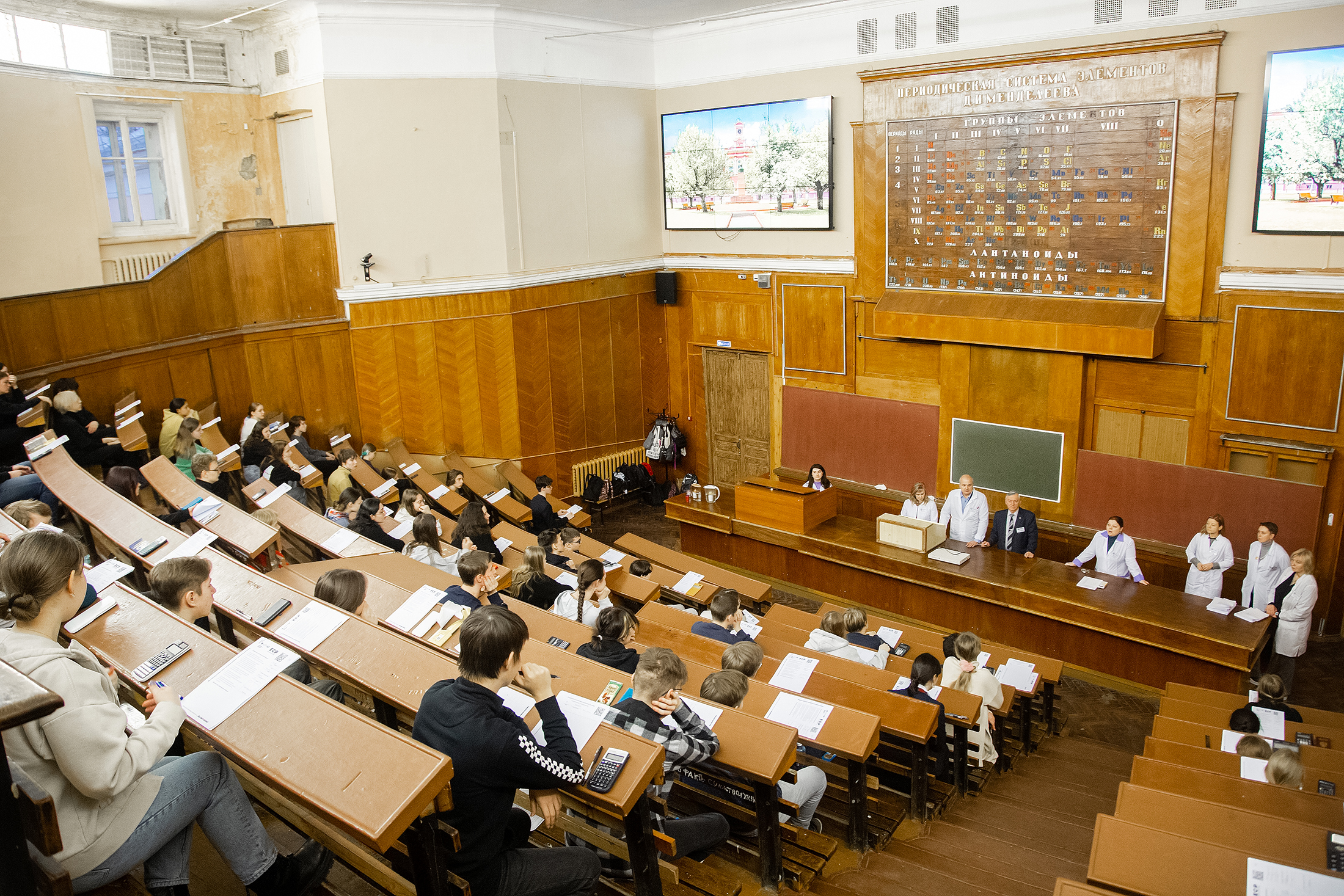 30 Январь / 2023В первый день проходил теоретический тур в Большой химической аудитории 6-го учебного корпуса. Само пребывание в поточной аудитории для школьников было в новинку, но витающий в воздухе дух вуза с солидной историей сразу настраивал на рабочий лад.