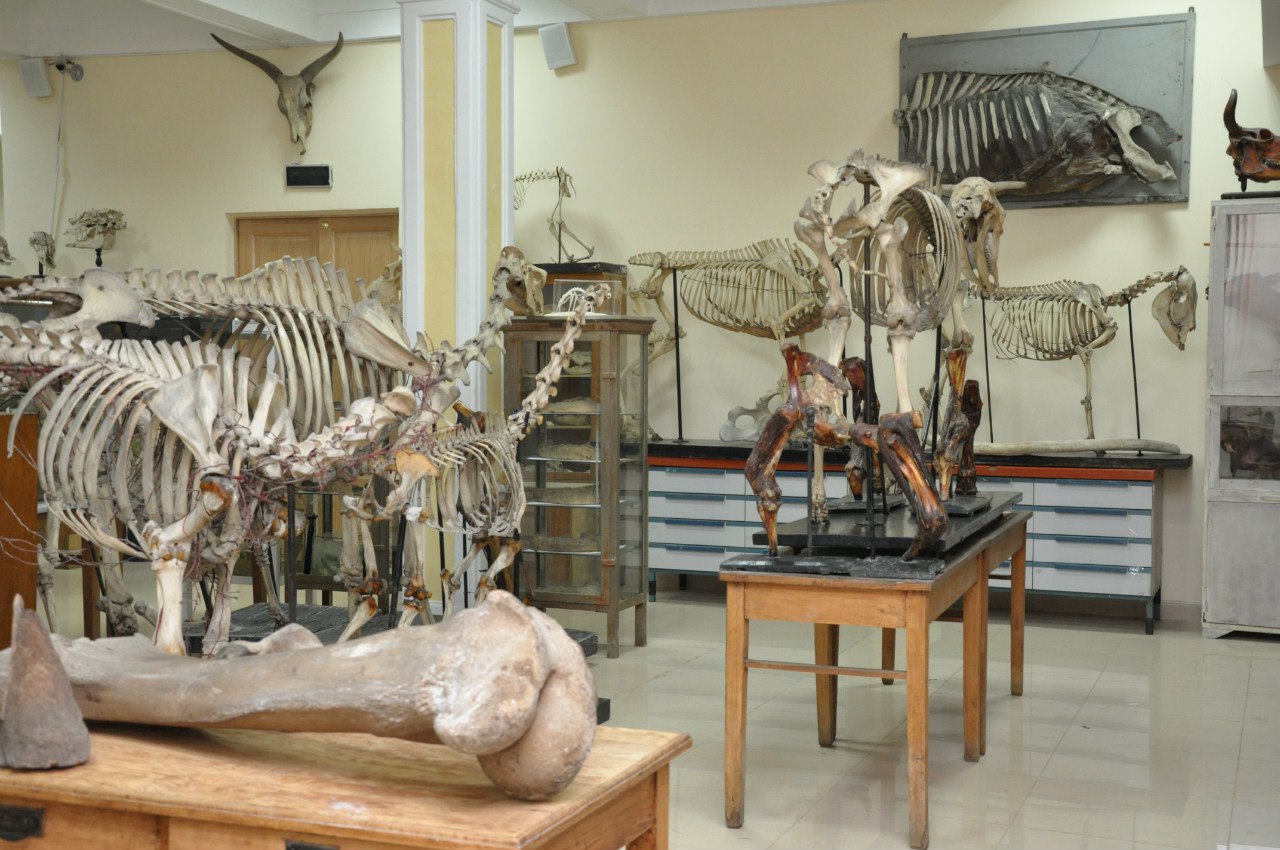 Н.П. Беляева познакомила гостей с научной частью музея, которая располагает богатой коллекцией по анатомии животных самых разных систематических групп, включая коллекции по аппарату движения в сравнительном и возрастном аспектах, по нервной системе домашних млекопитающих. Остеологическая коллекция музея включает собранные скелеты основных видов домашних млекопитающих, птиц и отдельные кости. Широко представлены мышечные, нервно-мышечные и нервно-сосудисто-мышечные препараты. Значительное место занимают экспонаты систем пищеварения, дыхания, мочевыделения, половой системы, кожи и её производных, нервной и сосудистой систем и органов чувств.