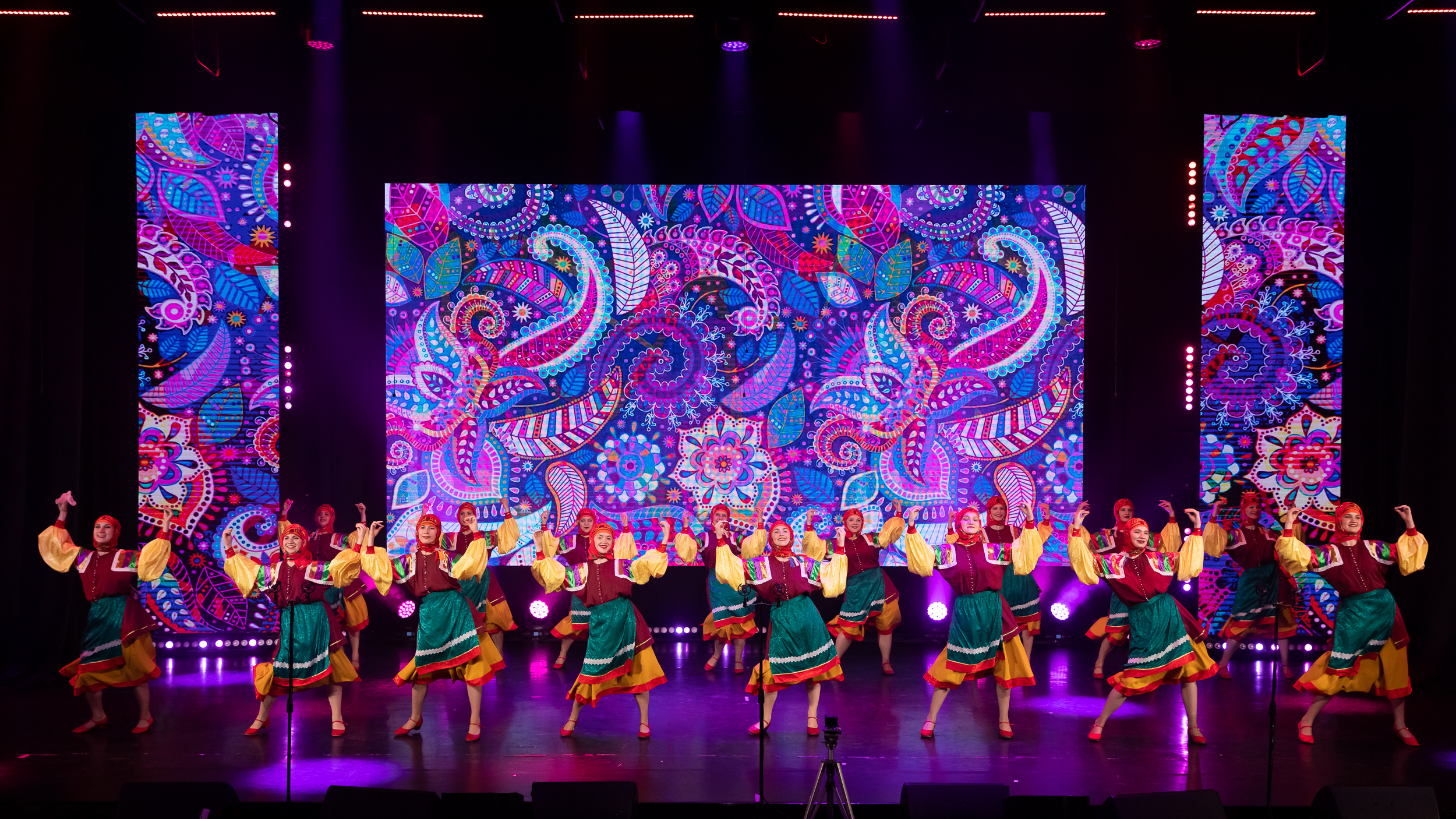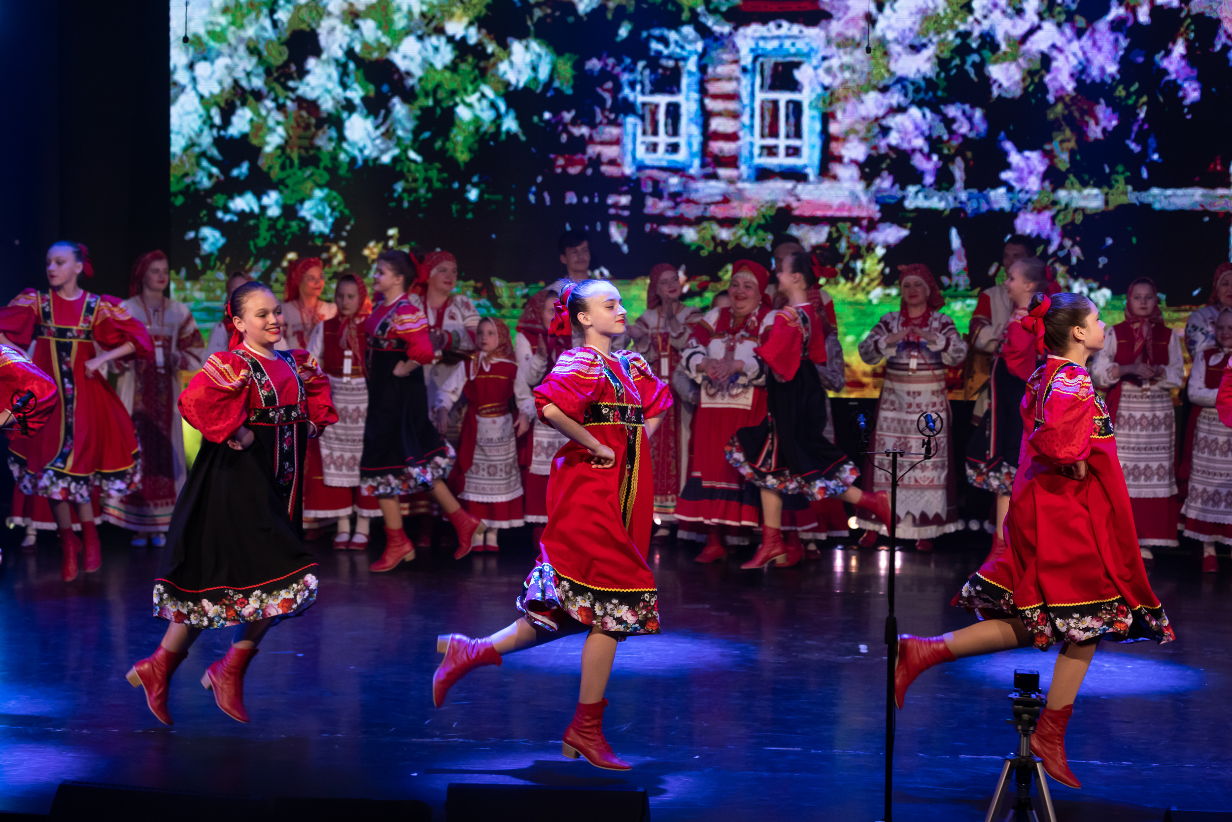 Артисты подарили зрителям яркие и запоминающиеся номера, мастерски исполненные в прекрасных народных костюмах. На главной сцене Тимирязевки выступили любимые творческие коллективы университета – «Каблучок» и «Ирмула».