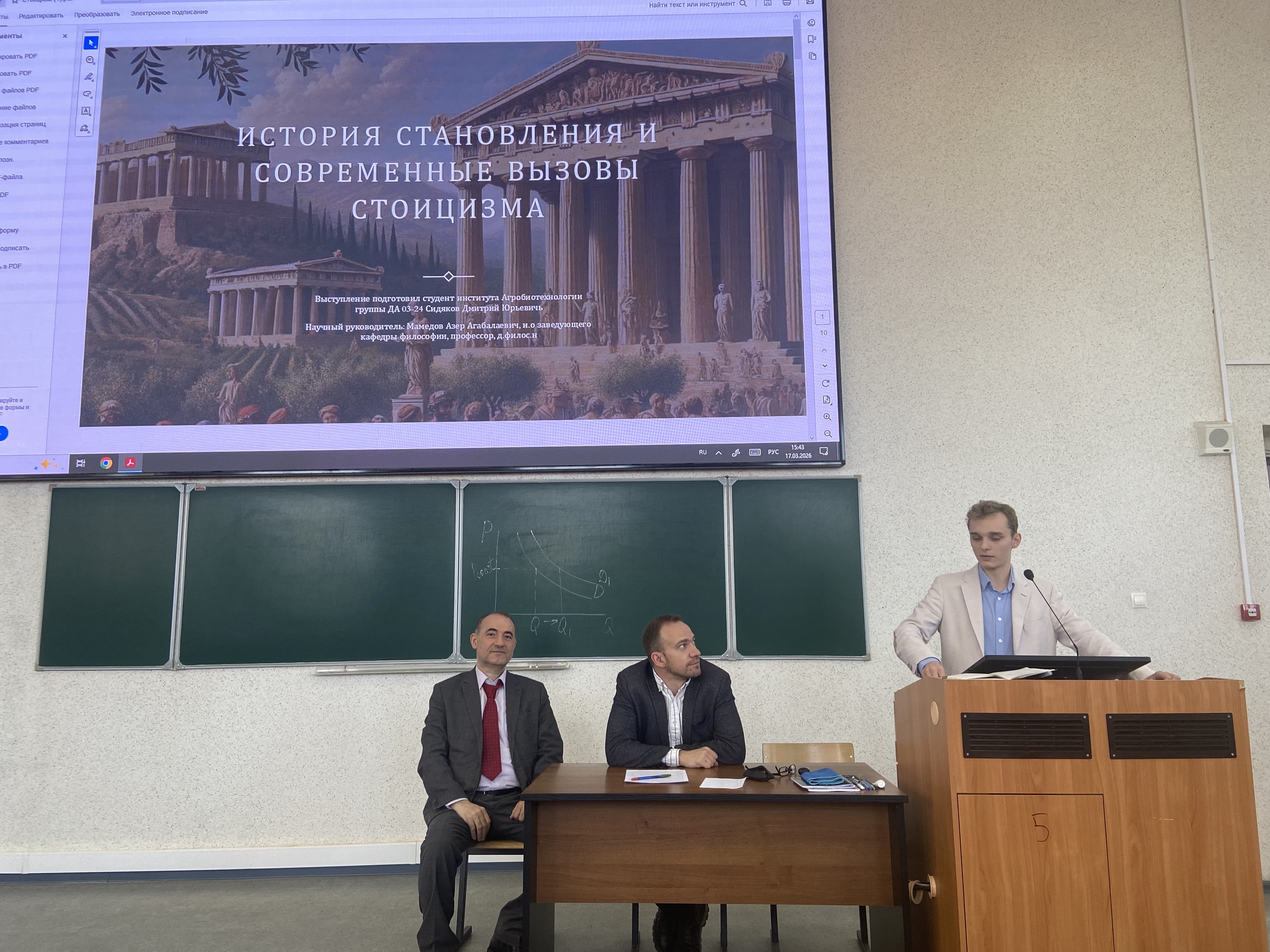 В ходе заседания были заслушаны доклады, охватывающие широкий спектр тем — от античной мысли до вызовов современности. Особый интерес аудитории вызвали выступления, посвященные философскому осмыслению нестабильности современного мира. Студенты представили работы на такие темы, как «Актуальность учений Гераклита и Будды в VUCA-эпоху»; «Философская проблематика индивидуализма в современной культуре»;