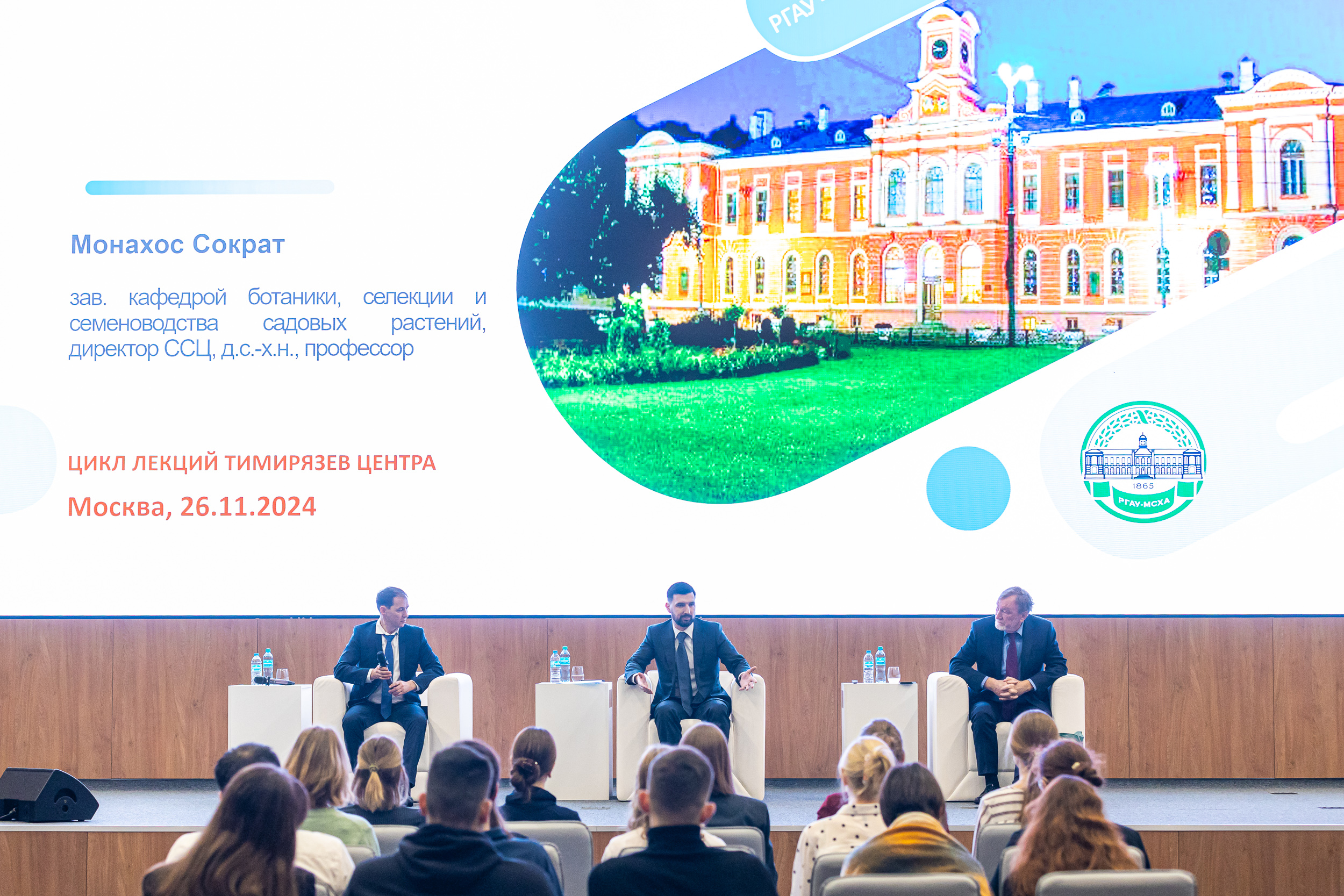 С.Г. Монахос акцентировал внимание студентов на подготовке современных специалистов-селекционеров, которая ведется в РГАУ-МСХА имени К.А. Тимирязева. По словам ученого, в университете обучают классической, молекулярно-геномной, клеточной и трансгенной селекции. Кроме того, в Тимирязевке делают ставку на предсказательную, селекцию, целью которой является выработка новых технологических решений для создания новых сортов и гибридов. При такой селекции используются методы биоинформатики, больших данных и машинного обучения.
