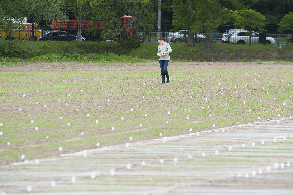 Почти два гектара Нижних полей, расположенных рядом с рекой Жабенкой, засеяны яровыми культурами: пшеницей, ячменем и тритикале. Сегодня у профессора кафедры генетики, биотехнологии, селекции и семеноводства Валентины Рубец занятия со студентами бакалавриата и магистратуры — они маркируют делянки селекционных посевов.