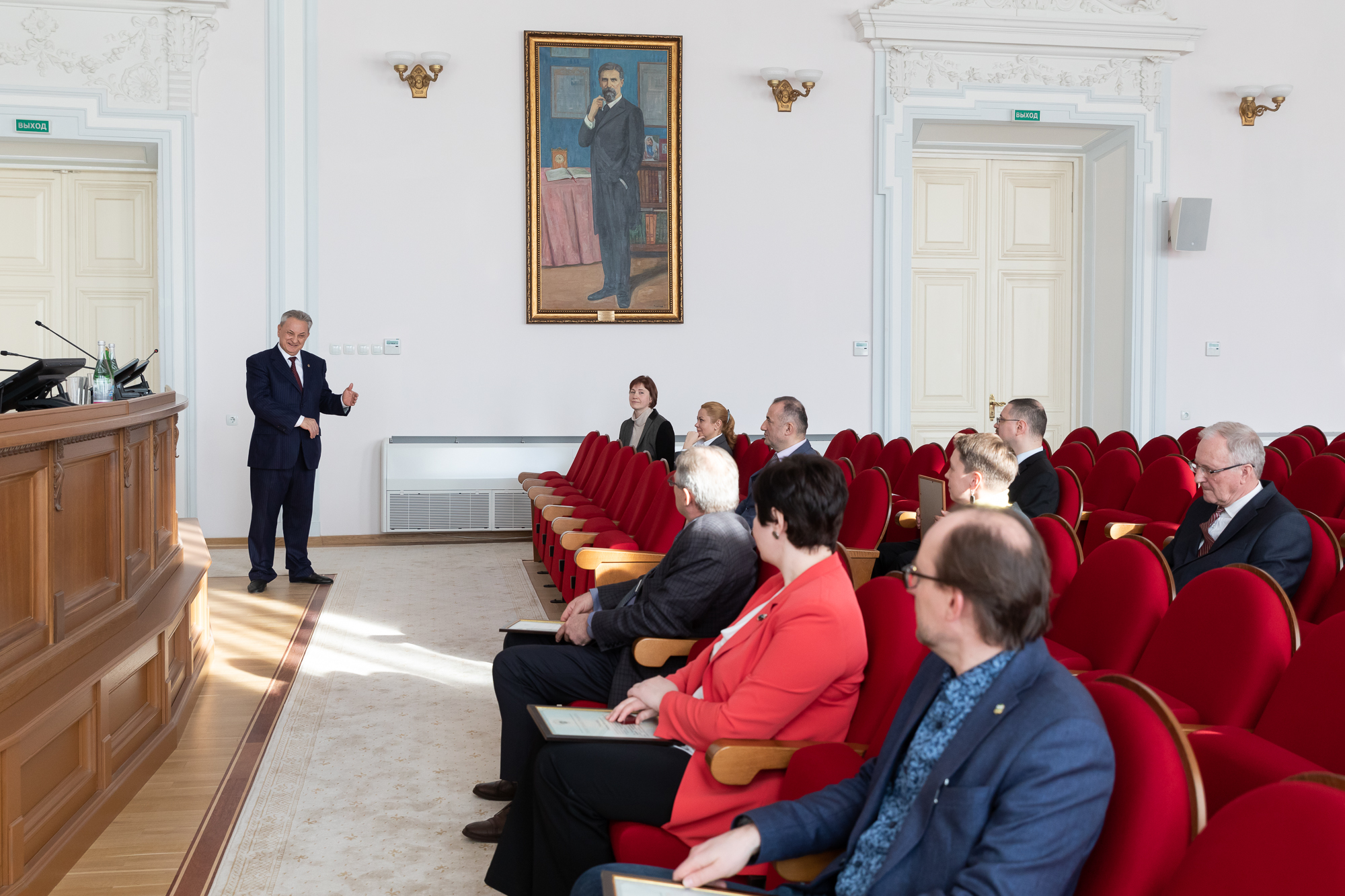 По традиции члены Ученого совета отметили заслуги отличившихся коллег. Ректор, Академик РАН, профессор Владимир Иванович Трухачев принял участие во вручении наград Министерства сельского хозяйства и Тимирязевской академии.