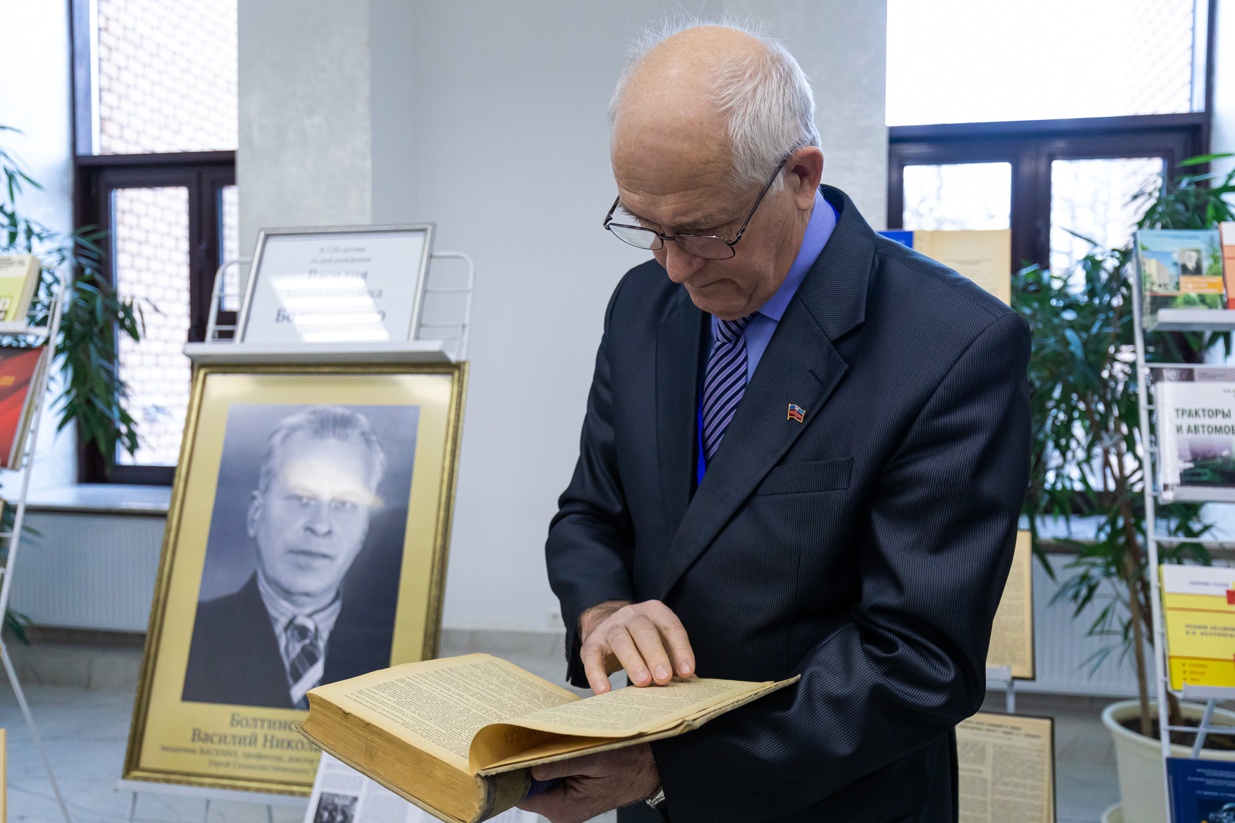 Именно на Машиноиспытательной станции начинал свой научный и профессиональный путь Василий Николаевич Болтинский. В 1927 году он написал научный труд о конструкции трактора с бескомпрессорным дизель-мотором по типу «Юнкерс» для работы с плугом 3×14 и внёс свой первый вклад в теорию и практику отечественного тракторостроения. На выставке отдельный стенд посвящен В.Н. Болтинскому.