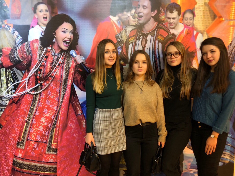 В преддверии праздничного шоу самые активные участники «Золотой осени-2018» побывали в государственном музыкальном театре фольклора «Русская песня» под руководством Народной артистки России Надежды Бабкиной. По инициативе и.о. ректора В.П. Чайки студенты и преподаватели были поощрены пригласительными билетами на концерт «Золотые хиты «Русской песни».
