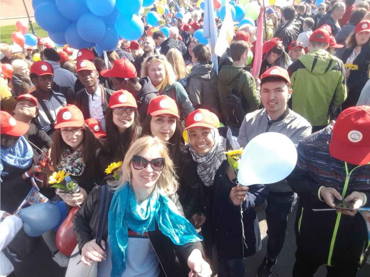Слушатели Подготовительного отделения для иностранных граждан РГАУ-МСХА приняли участие в праздничном первомайском шествии. Более 40 наших иностранных учащихся из 25 стран вместе с российскими студентами под знаменем Тимирязевки прошли единой колонной по Красной площади.