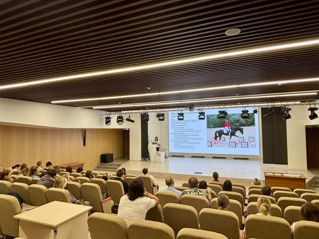 Тематика докладов охватила различные аспекты коневодства: использование гимнастических упражнений и кавалетти в тренинге лошадей; обзор новых видов конного спорта, включая увлекательный тентпеггинг; анализ проблемы травматизма скаковых лошадей и пути её решения; стратегии сохранения уникальной Владимирской породы и воспроизводительные качества русской верховой и др.