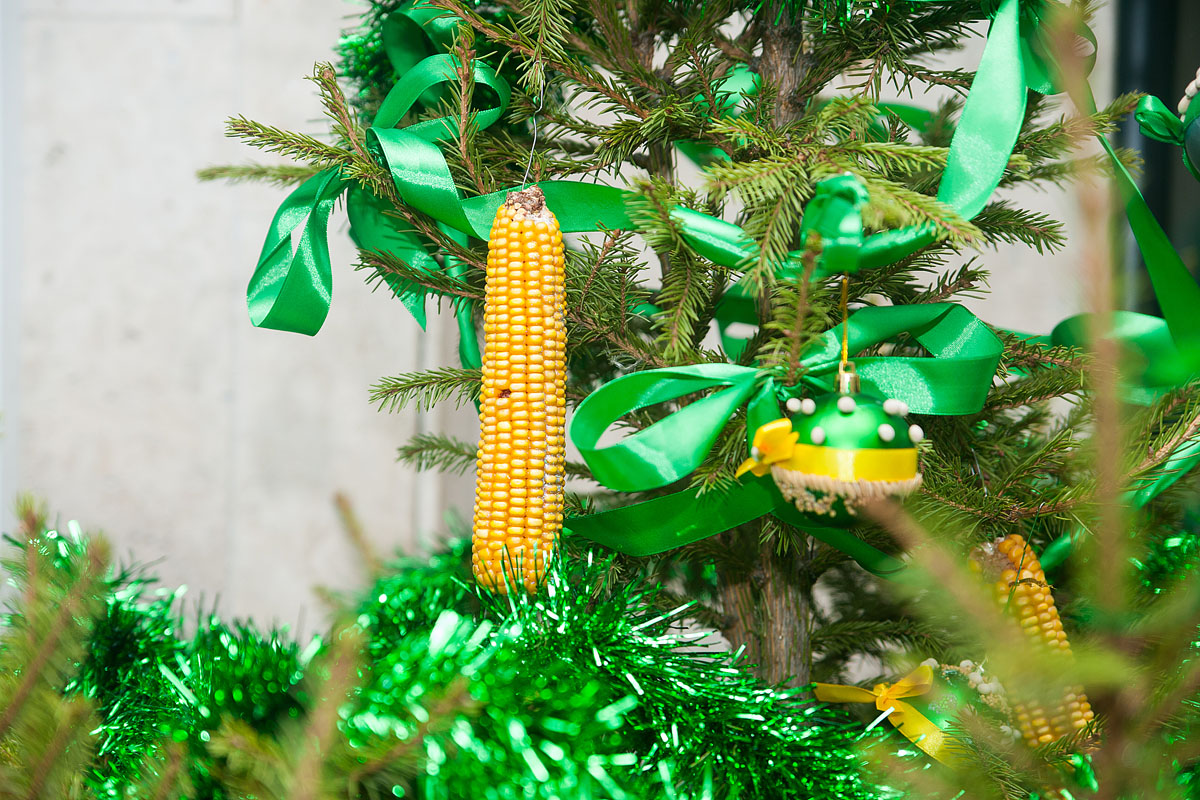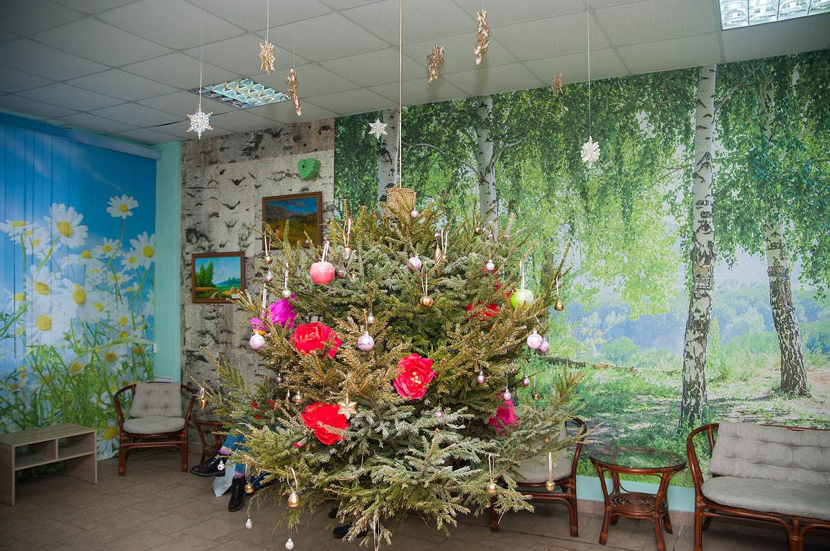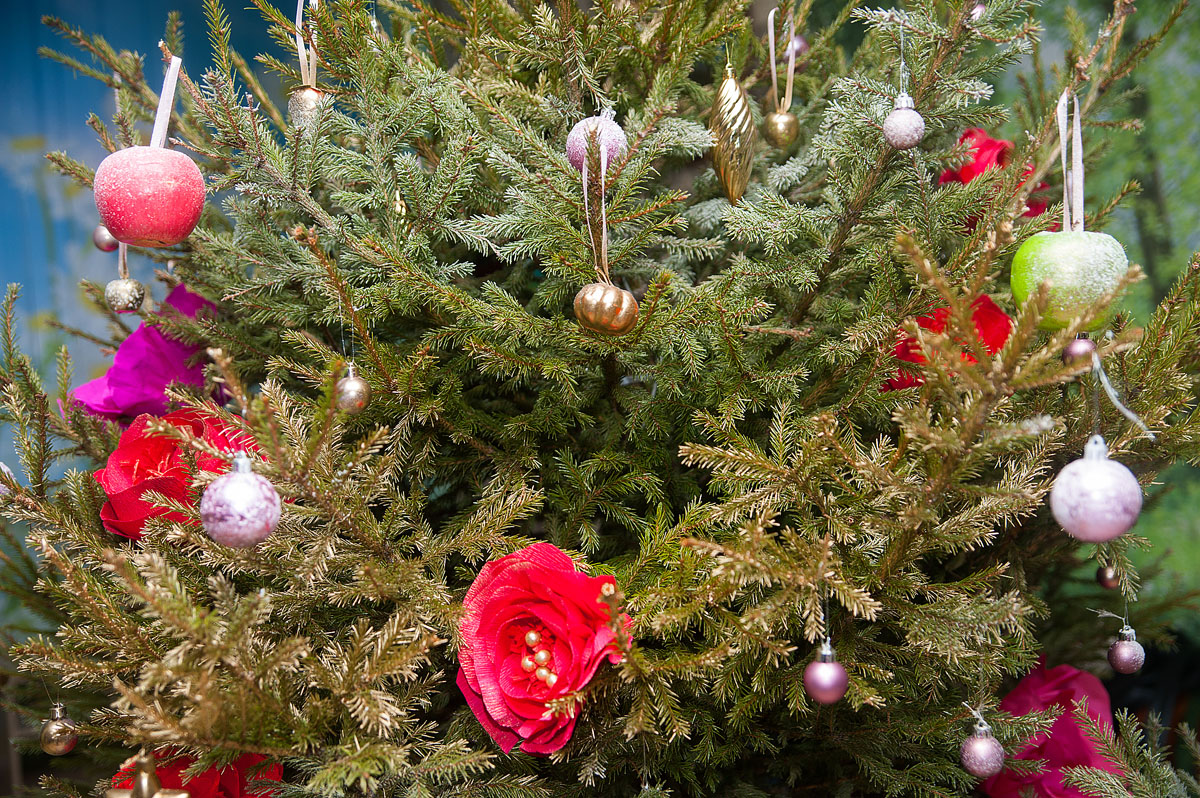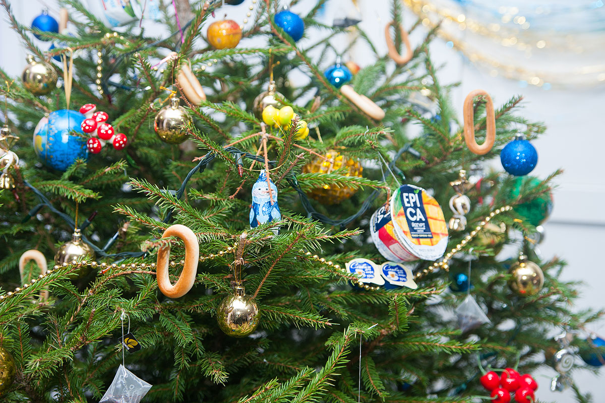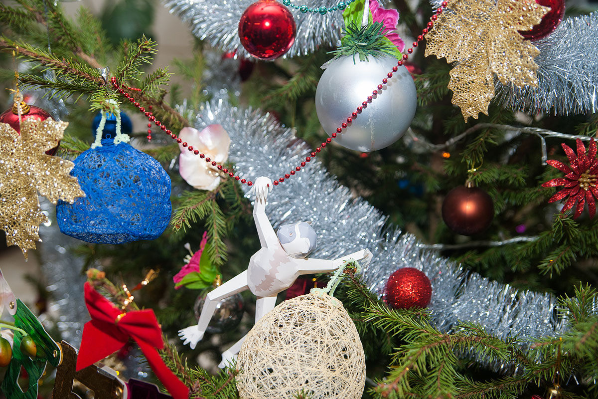 Члены жюри полюбовались всеми елками и пришли к единому мнению: самая красивая и отвечающая критериям конкурса у факультета садоводства и ландшафтной архитектуры. Здесь креативность, явно, зашкаливала. Елка, подвешенная в фойе учебного корпуса к потолку, напоминала праздничную люстру.