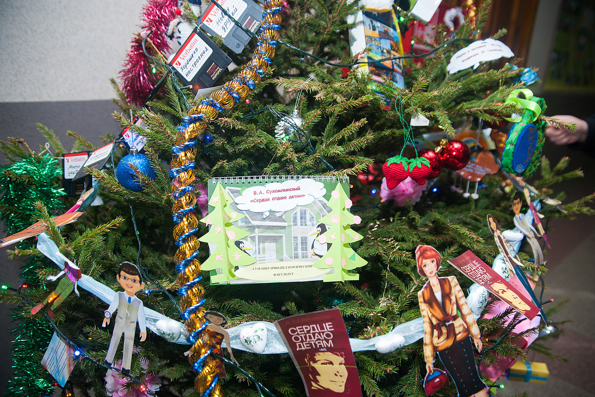 Второе месте отдали красавице, которую наряжали студенты-энергетики, а третье присвоили елочке педагогов-гуманитариев.