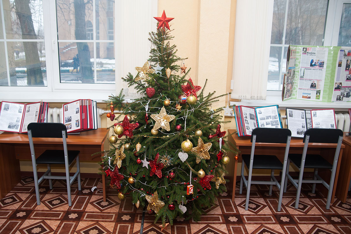 Например, на технологическом факультете членов жюри встретила елочка из макаронных изделий. На факультете процессов и машин в агробизнесе зеленую гостью охранял снеговик с разводным ключом. На энергетическом — вместо пятиконечной звезды или пики соорудили на елочной макушке букву «Э», которая переливалась всеми оттенками золотого. На гуманитарно-педагогическом елка была украшена макетами словарей, дискетами, глобусами, на факультете экономикии и финансов — банкнотами. А вот на природообустройстве и водопользовании вместо игрушек развесили фото с собою любимыми. На них портреты самых активных студентов.