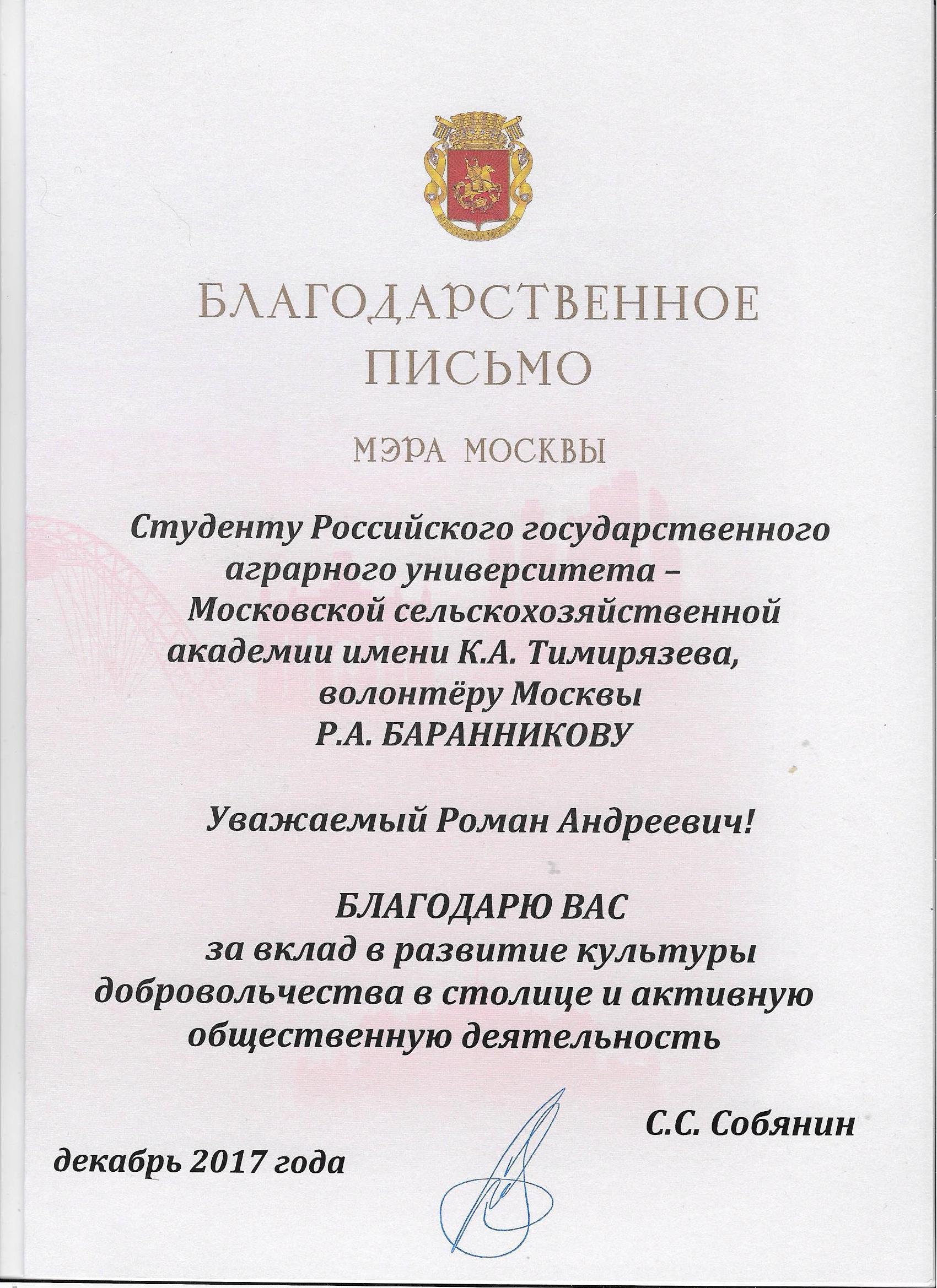 17 Декабрь / 2017Награждение проходило в спортивном комплексе "Крылья советов". Получала награду Дарья Бахтина. Кроме того, в этот же день Роман Баранников получил Благодарственное письмо мэра Москвы Сергея Собянина за вклад в развитие культуры добровольчества в столице и активную общественную деятельность.
