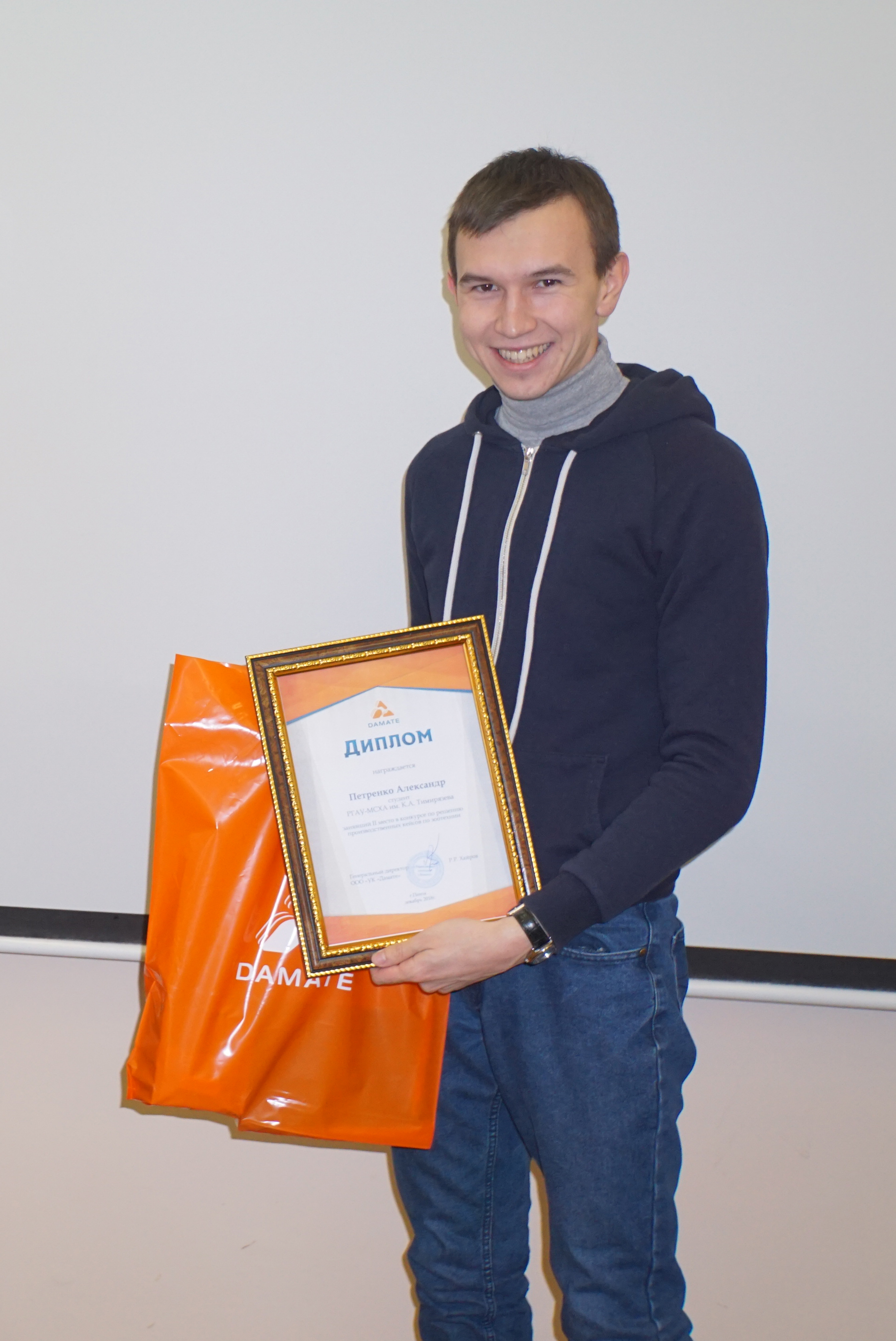 В разделе «зоотехния» (кормление животных) 1-е место заняла Екатерина Бирюкова. Группа компаний «Дамате» наградила призера премией в размере 10 000 рублей.