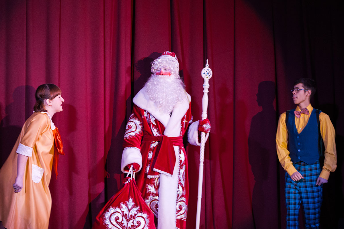 25 Декабрь / 2017В прошедшее воскресенье гостей нашего ДК ждало необычное представление. По задумке организаторов зрители попадали в сказку уже при входе в здание. В фойе взрослых и детей ждала интерактивная программа: театральные миниатюры, викторины и игры. Так что в зрительный зал они входили в отличном настроении.