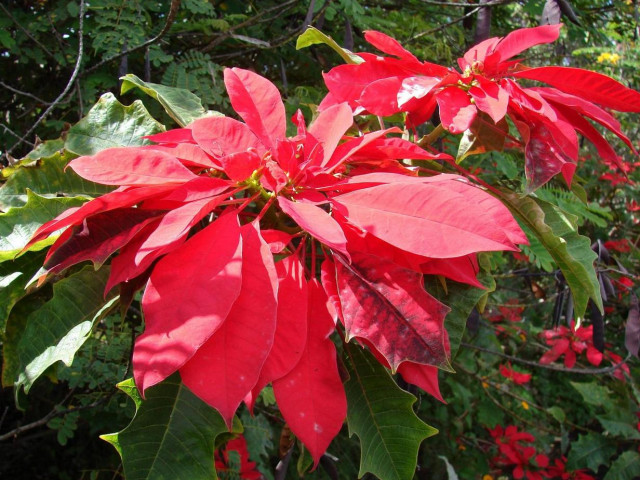 Пуансеттия – «Вифлеемская звезда»: Это изысканное растение с яркими прицветниками, ставшее символом Рождества в англоговорящих странах.