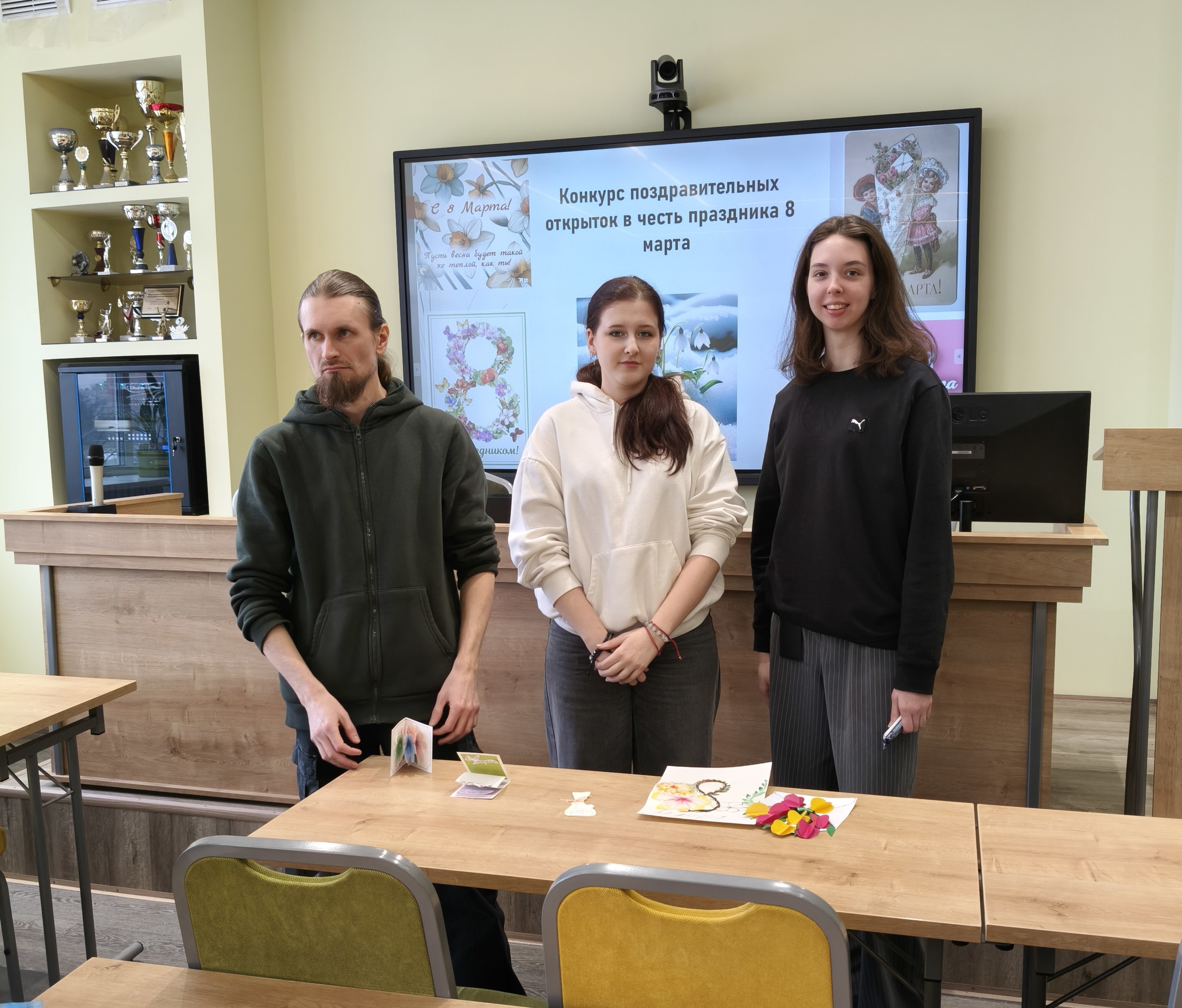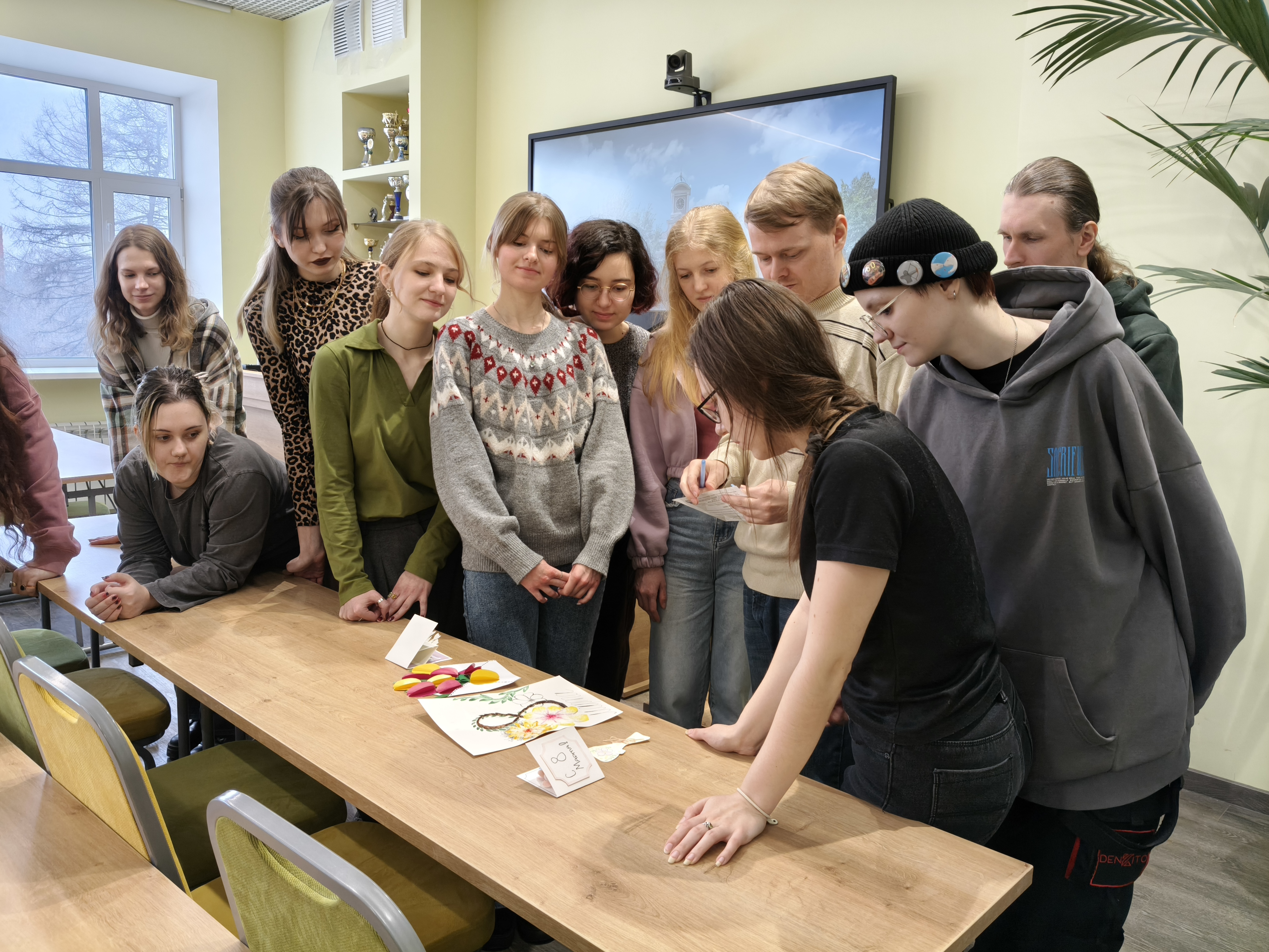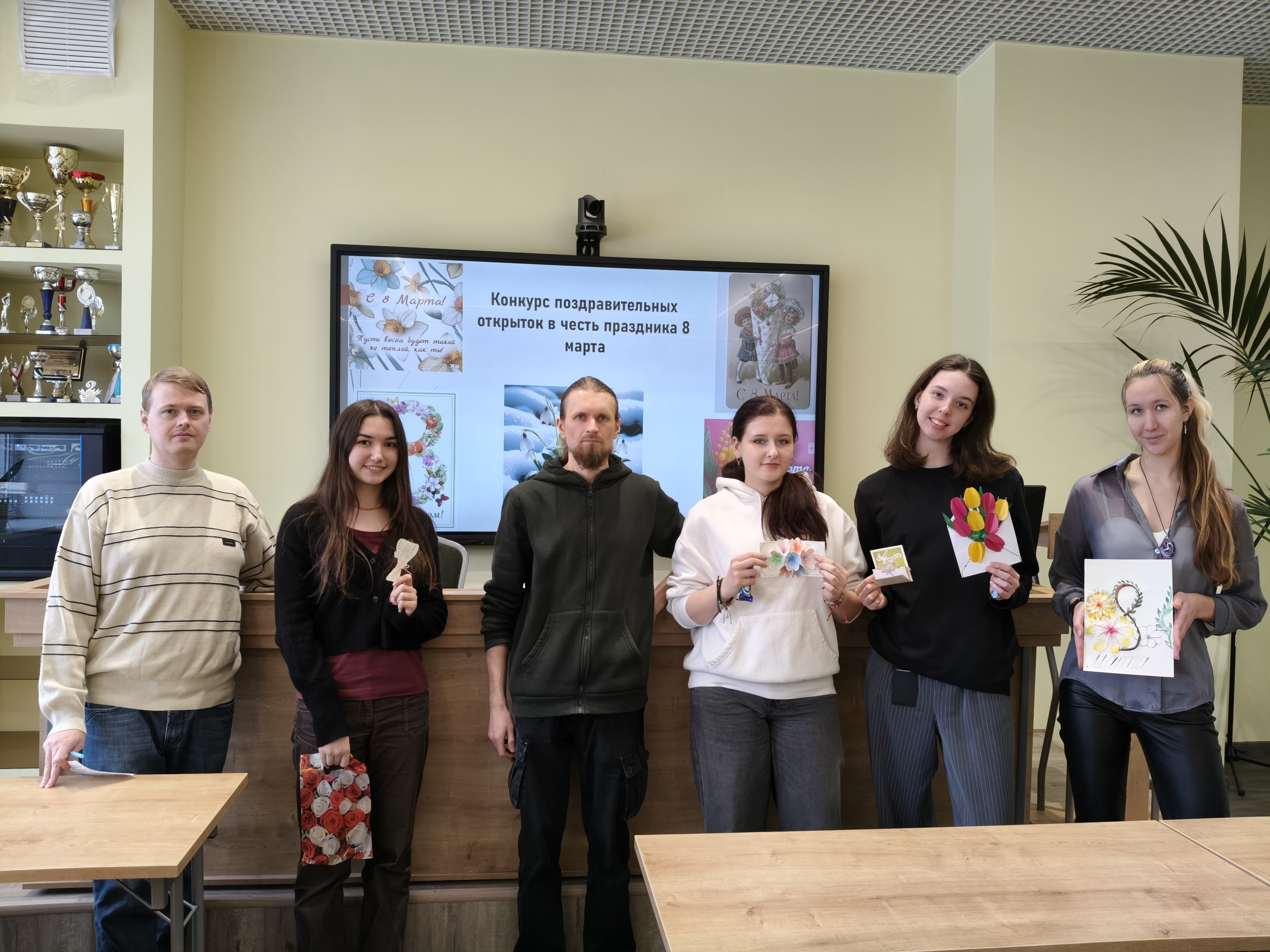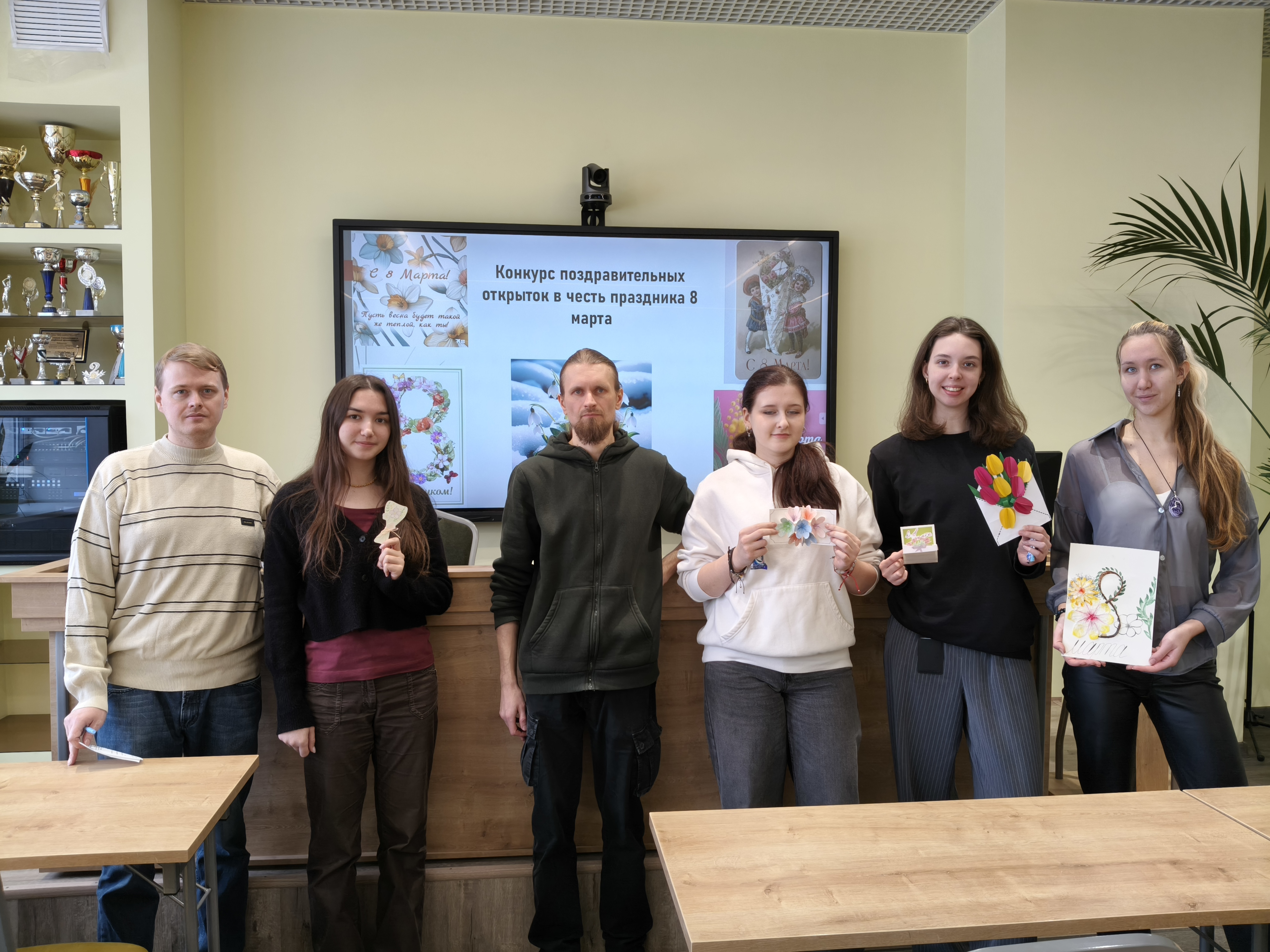 6 марта эстафету празднования подхватила творческая часть программы. Студенты группы Д-С 02-25 стали участниками конкурса поздравительных открыток, посвященных Международному женскому дню. Вдохновленные историей праздника, где еще в советские времена открытки украшали изображениями женщин-ударниц, а позже — весенними пейзажами и цветами, ребята создали свои уникальные работы. Организацию конкурса и кураторство взяли на себя доценты Чудецкий А.И. и Голоктионов И.И.