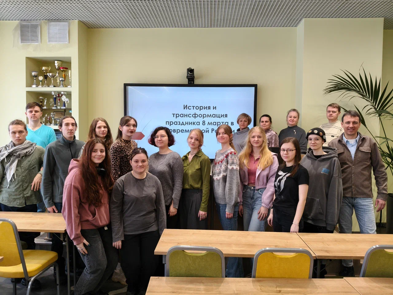 06 Март / 20265 марта студенты групп Д-С 02-24 и 02-25 приняли участие в просветительской встрече на тему: «История и трансформация праздника 8 марта в современной России». Мероприятие позволило обучающимся проследить эволюцию даты: от дней солидарности работниц начала XX века и революционных событий 1917 года до превращения праздника в символ весны, красоты и семейных ценностей в современной России. Студенты узнали о роли Клары Цеткин, движении суфражисток и том, как образ «женщины-труженицы» сменился образом хранительницы очага. Со вступительным словом о важности сохранения исторической памяти и преемственности поколений выступили ответственные за мероприятие доценты кафедры: Орлова Е.Е., Зубик И.Н. и Козлова Е.А.