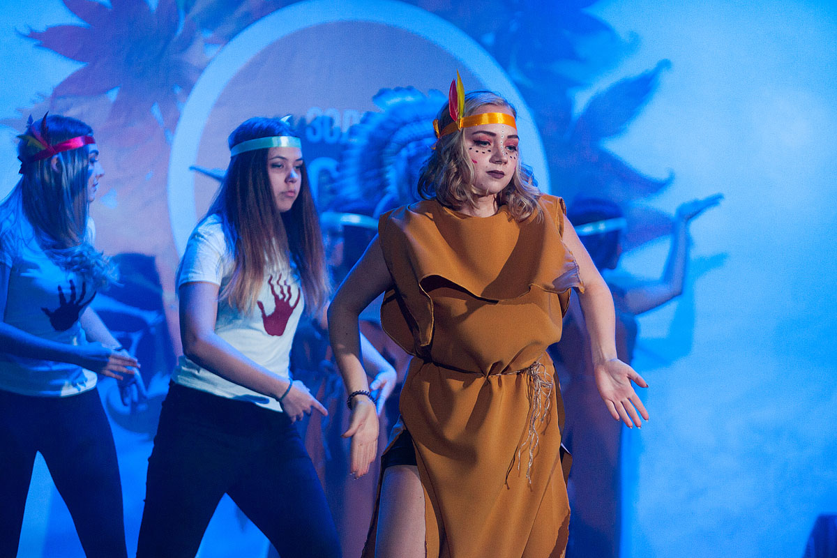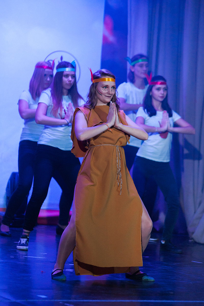 Вечер начался с очень зрелищного и атмосферного танцевального номера «Тотем». Свободолюбивый дух древних народов, веяния хиппи-культуры, дружба, единство и счастье. Продолжает программу вокальный дуэт талантливых первокурсников Вероники Букреевой и Дмитрия Одегова, исполнивших песню «Все пройдет»! С особой искренностью прочитано стихотворение «Слово о любви» Полиной Крымовой. Далее танец «Ready to dance» под популярную композицию, известную по многим хит-парадам – «Swalla» - Jason Derulo.