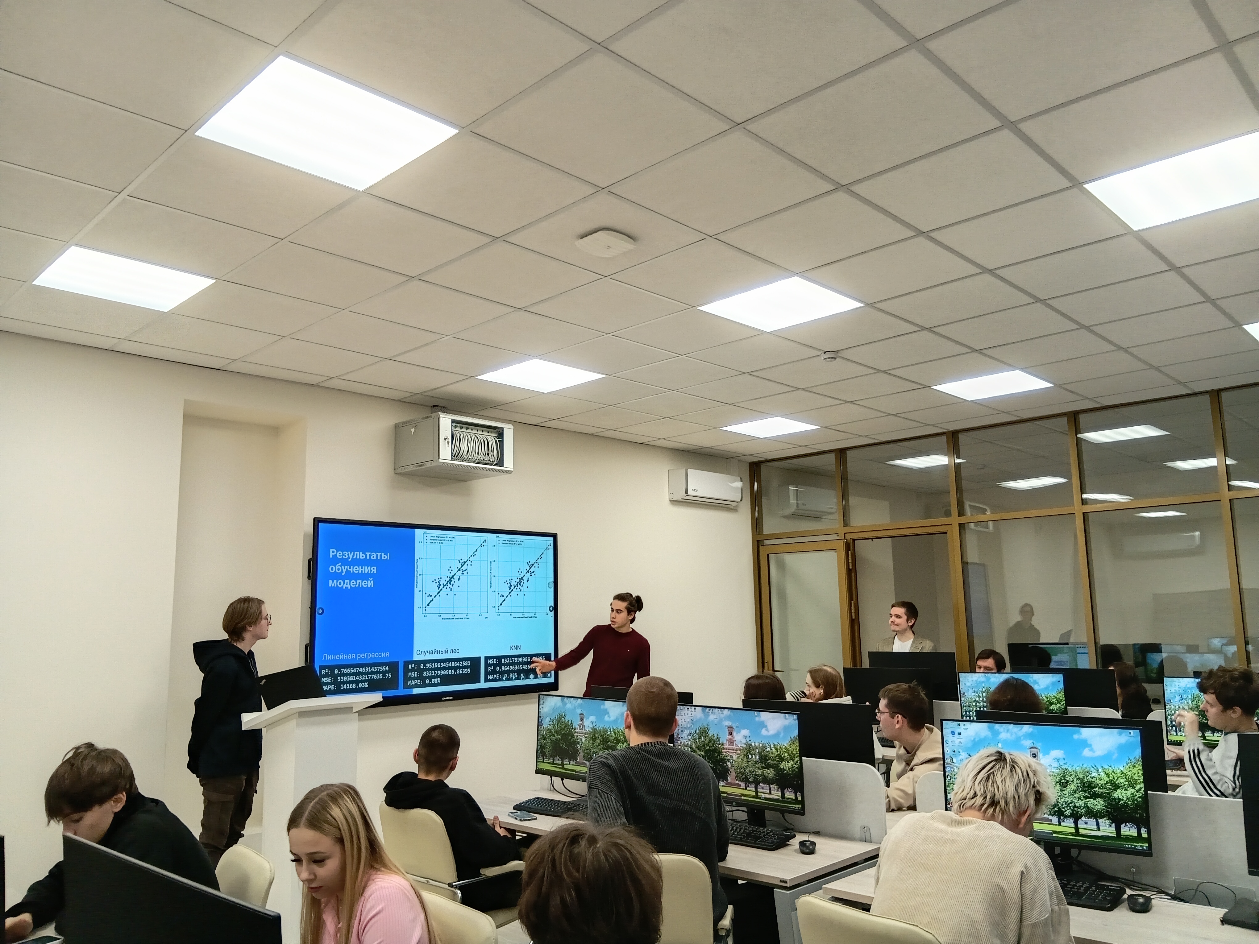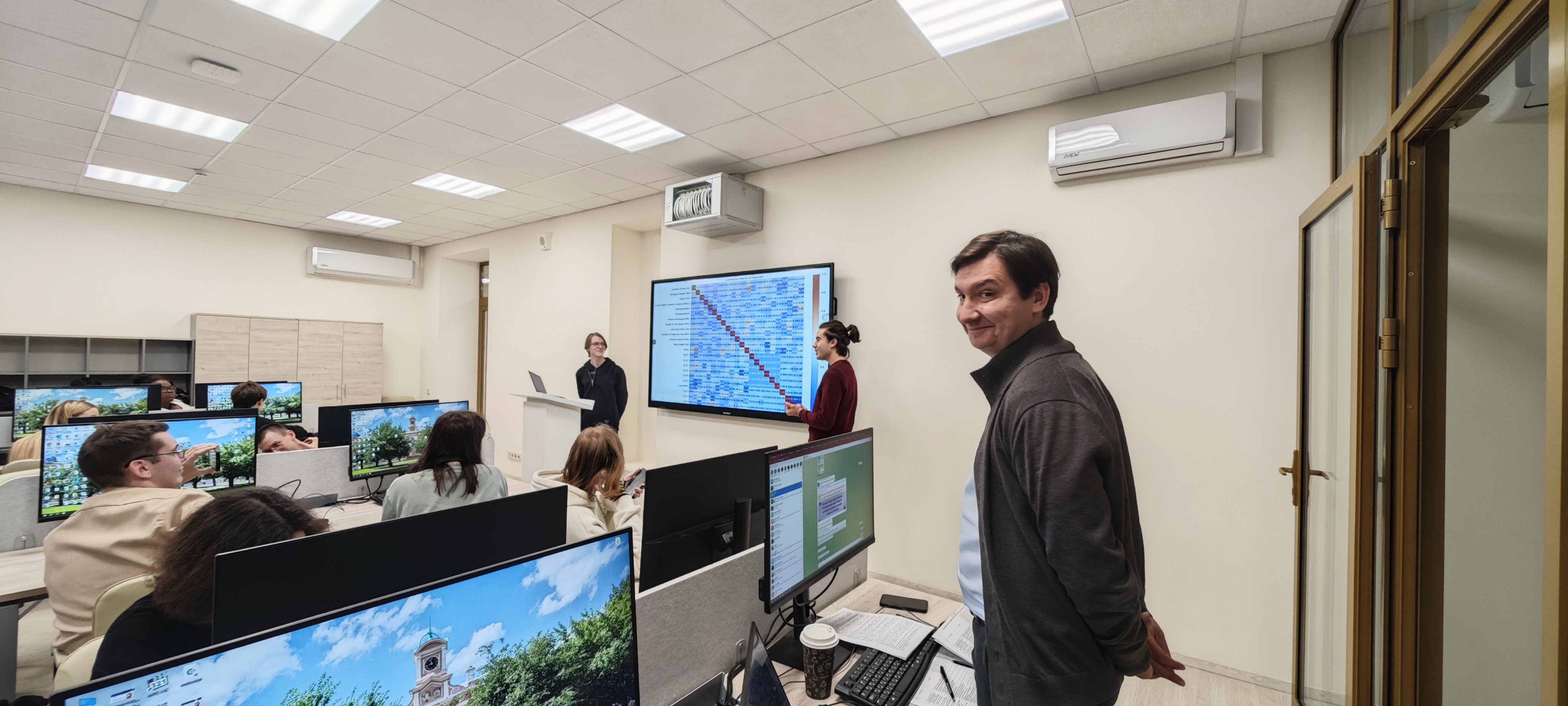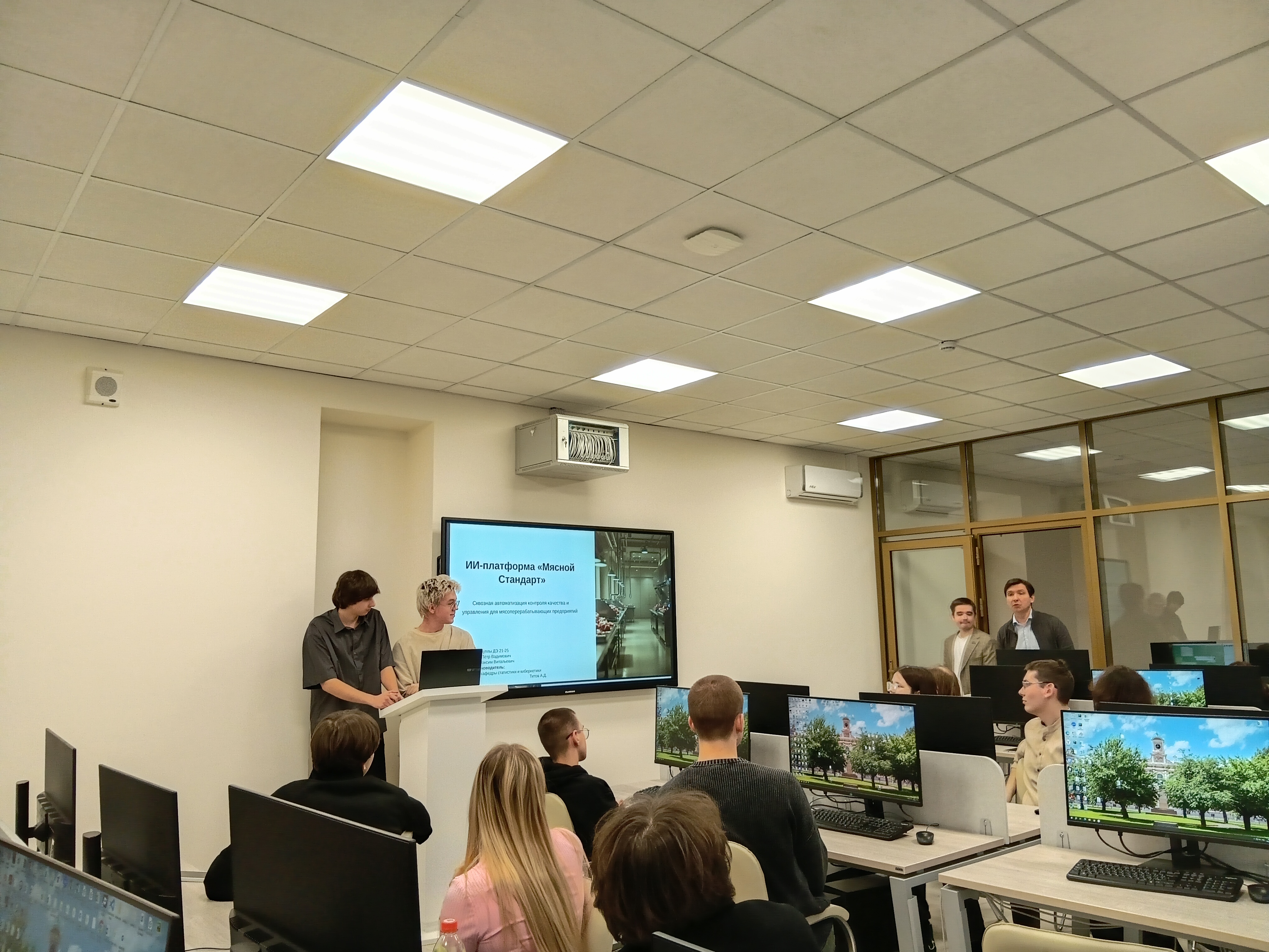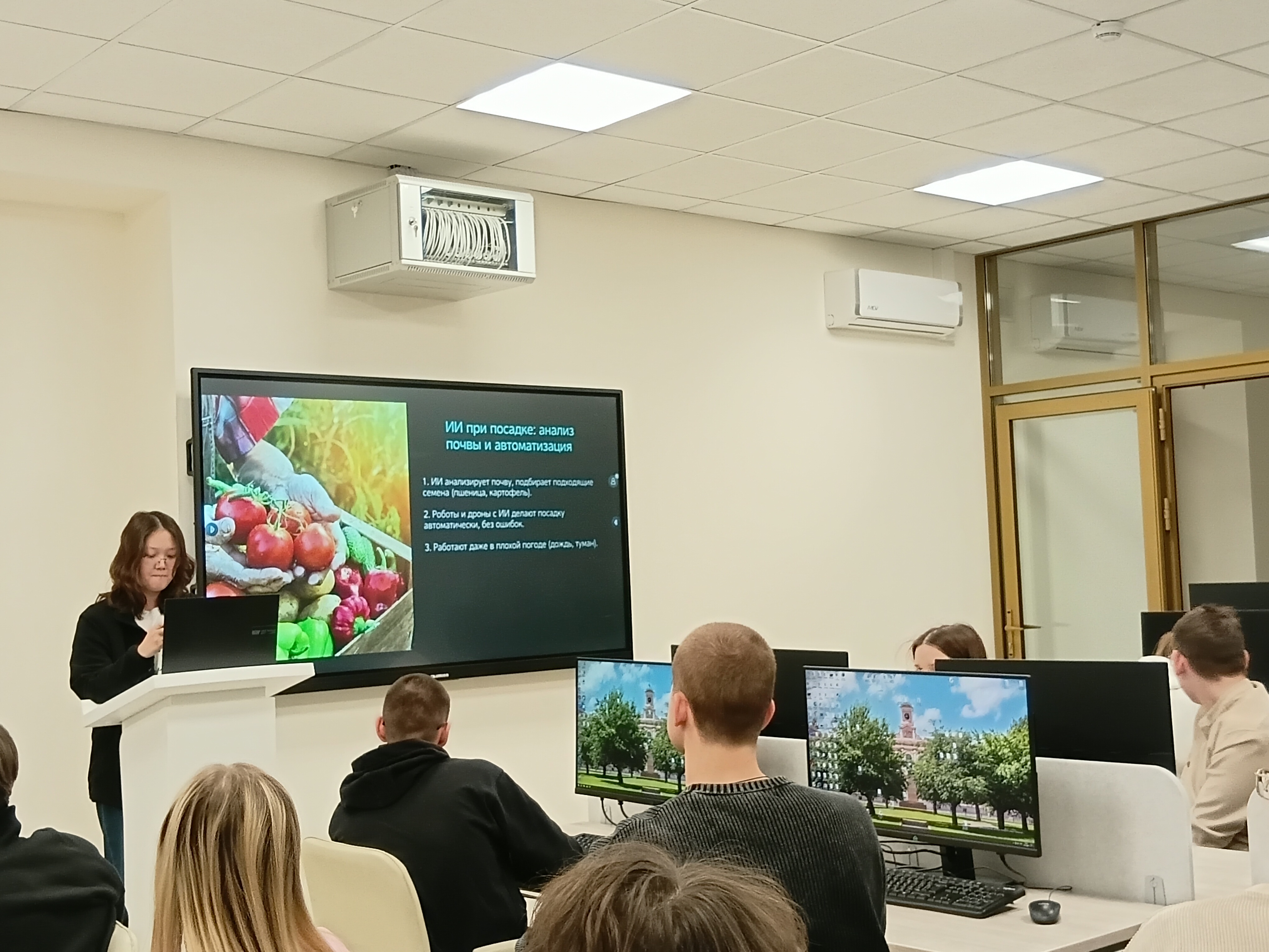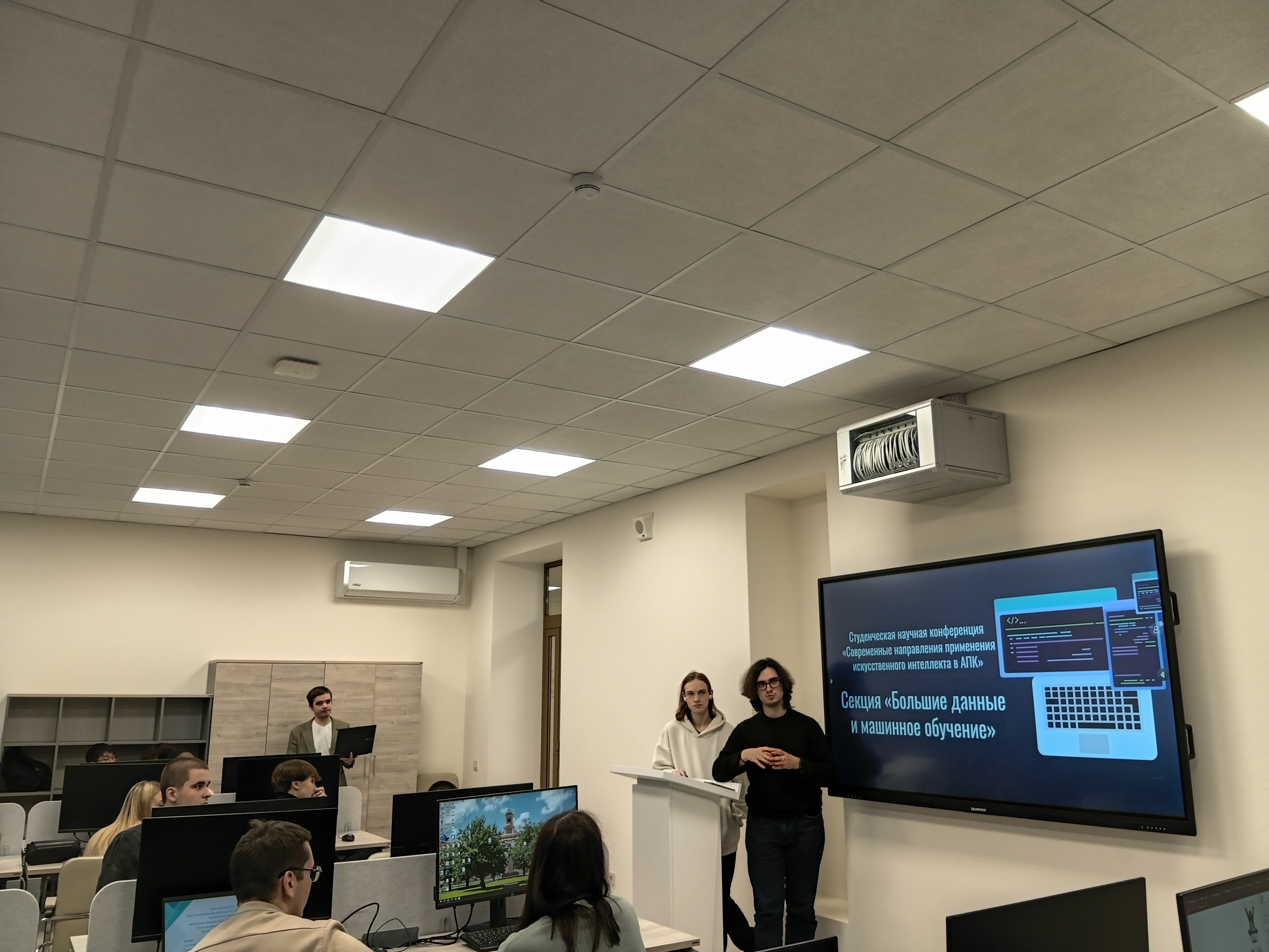 25 Декабрь / 202519 декабря 2025 г. состоялись заседания четырех секций Студенческой научной конференции «Современные направления применения искусственного интеллекта в АПК», где студенты 1 курса, обучающиеся по программам топ уровня в сфере искусственного интеллекта по направлениям «Информационные системы и технологии» и «Прикладная информатика», вышедшие в финал Конкурса студенческих проектов по применению искусственного интеллекта в решении проблем сельского хозяйства, презентовали результаты своих исследований.