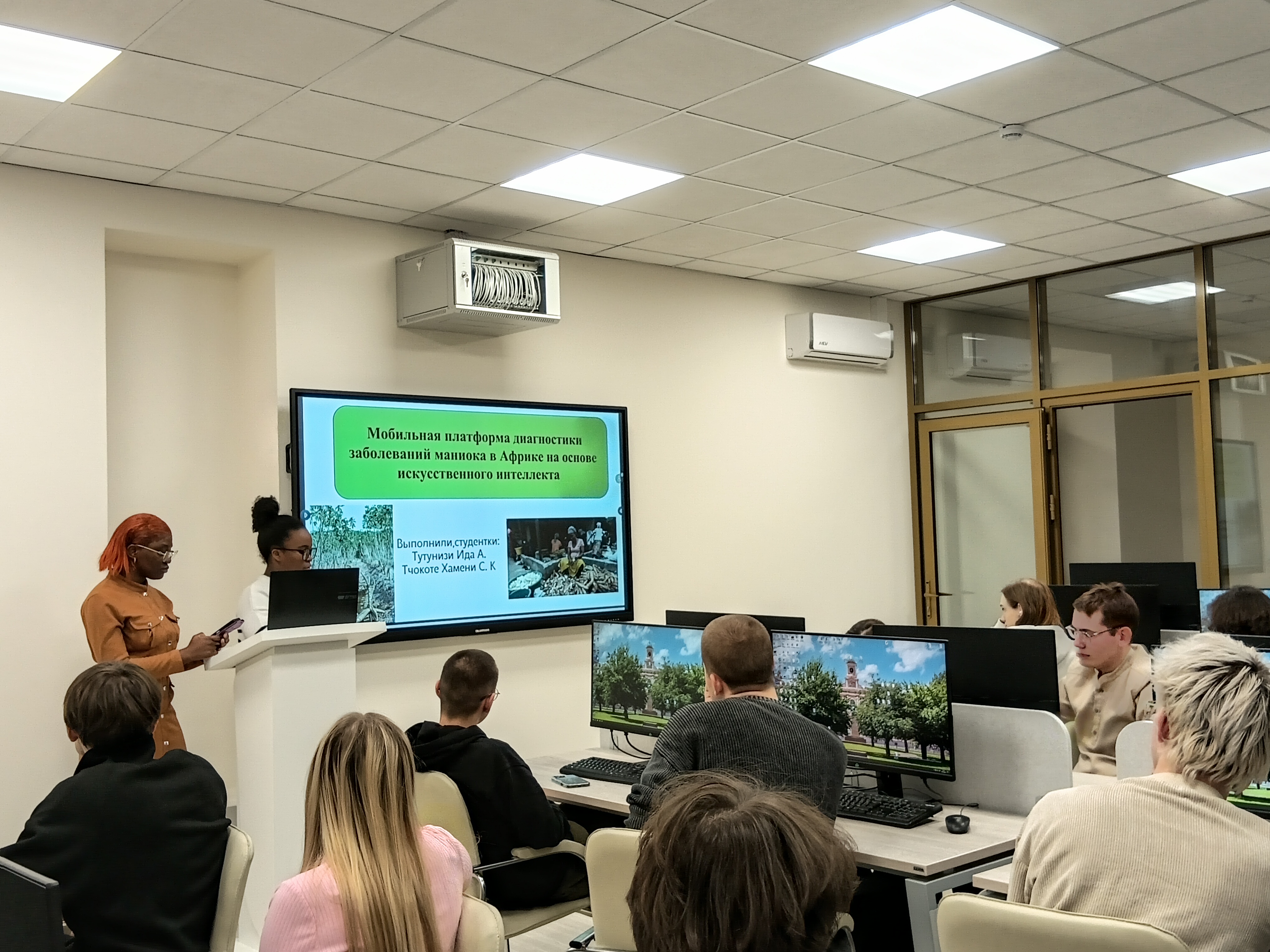 «За лучшую презентацию» – Тутунизи Ида Александра, Тчокоте Хамени Сюзанн Клеменс за проект «Мобильная платформа диагностики заболеваний маниока в Африке на основе искусственного интеллекта». Научные руководители: Дашиева Баярма Шагдаровна, канд. экон. наук, доцент Центра; Кудинова Анна Игоревна, исполнительный директор ООО «Айтисфера», преподаватель, индустриальный наставник центра.