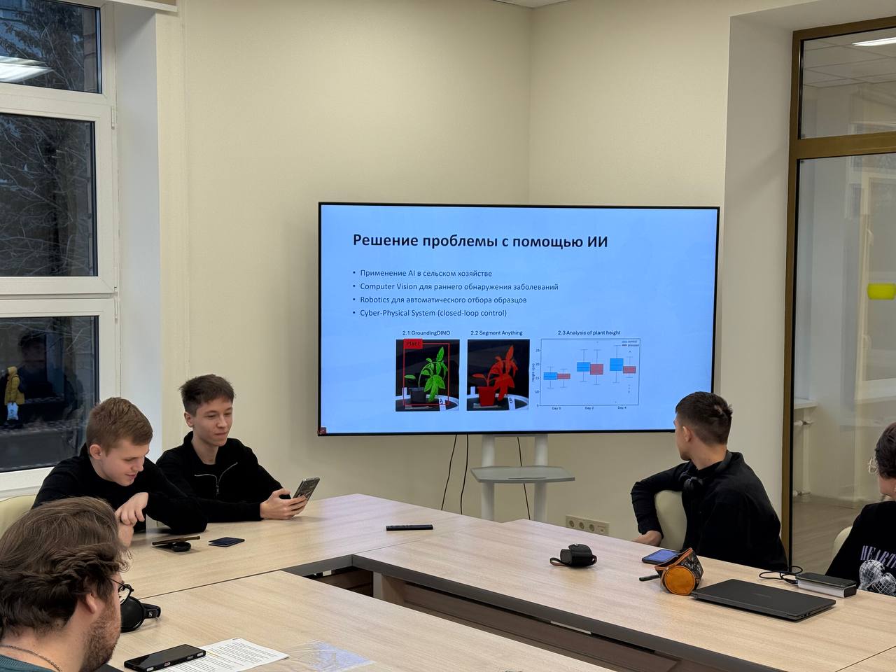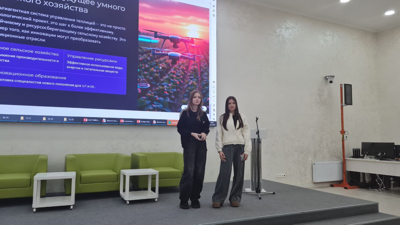 Диплом II степени – Лазуренко Максим Алексеевич, Харитонов Егор Денисович, Прудников Константин Сергеевич за проект «Умная теплица: как компьютерное зрение и ИИ создают идеальный микроклимат для растений». Научные руководители: Лапшин Сергей Михайлович, ассистент Центра; Шкряба Ольга Сергеевна, директор ООО «РЕТЕКСТ»
