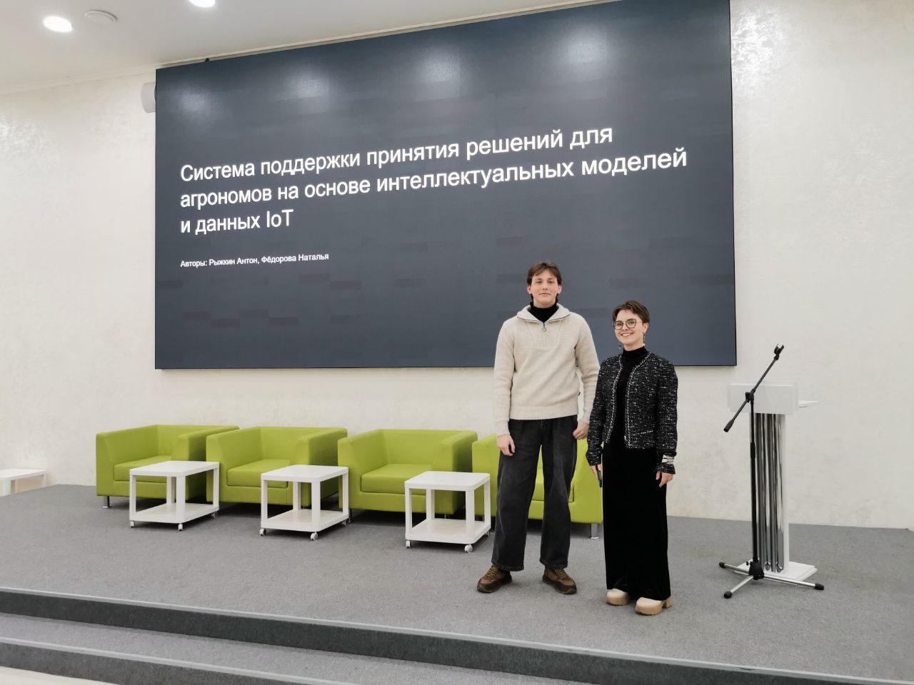 Диплом I степени – Рыжкин Антон Вячеславович, Коперсак Виктория Степановна, Федорова Наталья Владимировна за проект «Система поддержки принятия решений для агрономов на основе интеллектуальных моделей и данных IoT». Научные руководители: Греченева Анастасия Владимировна, канд. техн. наук, директор, РОП Центра; Ткаченко Никита Сергеевич, технический менеджер проектов ООО «Яндекс. Технологии».