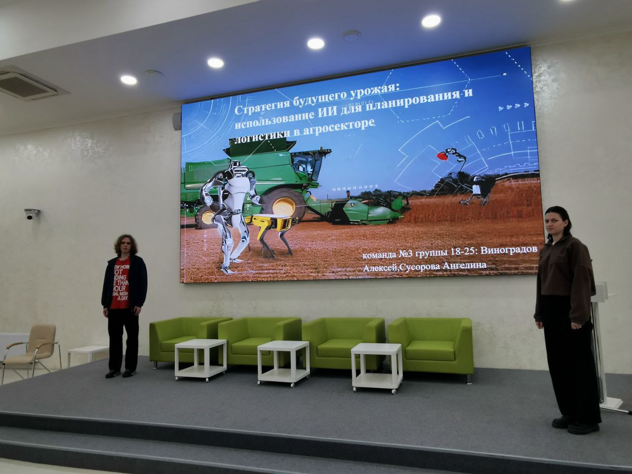 Диплом I степени – Виноградов Алексей Дмитриевич, Исмаилов Рамиль Абилдаевич, Сусорова Ангелина Андреевна за проект «Стратегия будущего урожая: использование ИИ для планирования и логистики в агросекторе». Научные руководители: Красовская Людмила Владимировна, канд. техн. наук, доцент, РОП Центра; Блакитный Николай Владимирович, руководитель направления тестирования отдела разработки ООО «ВЕБИНАР ТЕХНОЛОГИИ».