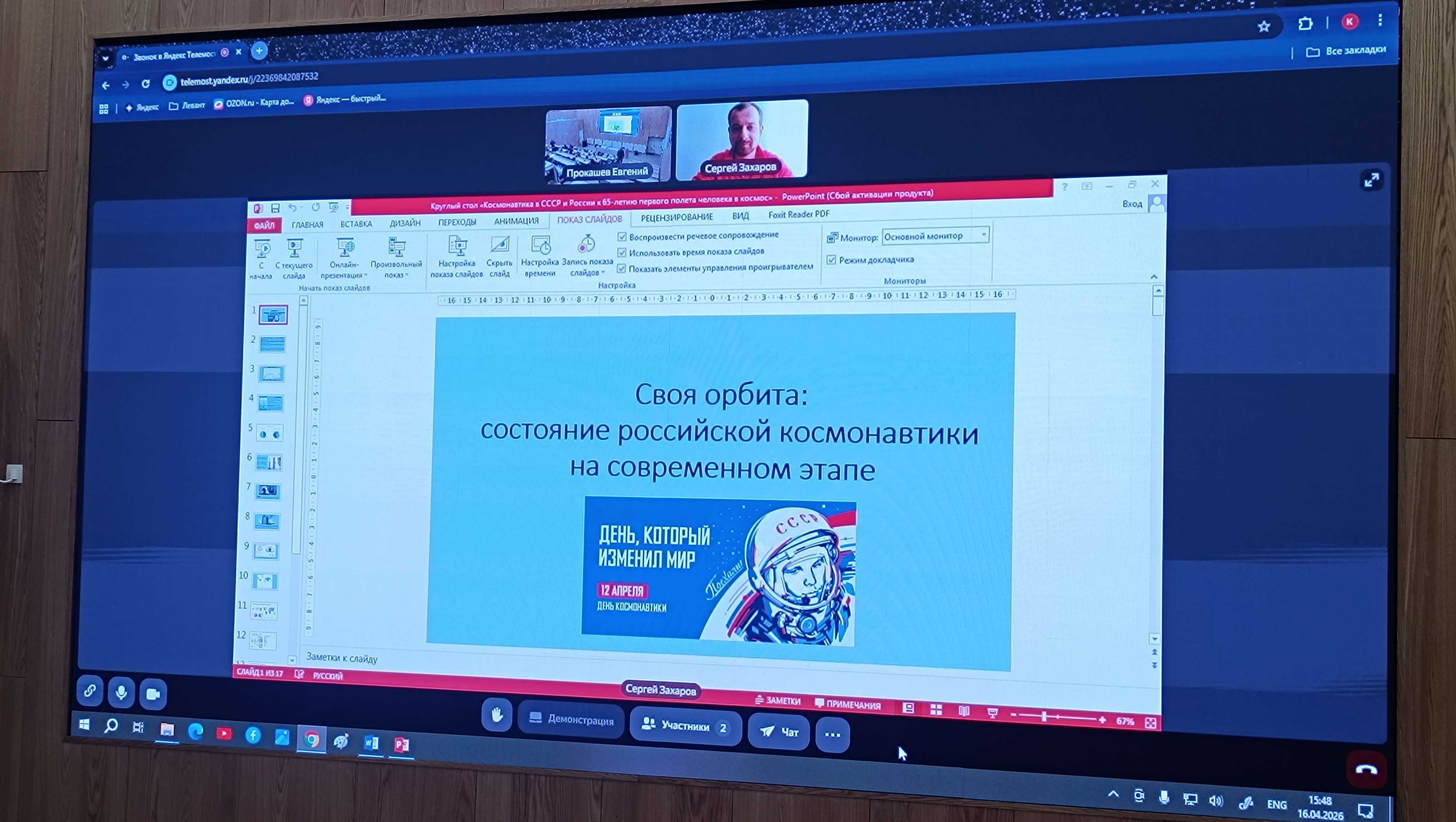 Участники круглого стола 16 апреля 2026 г. обсудили влияние научных школ и выдающихся личностей на становление отечественной космонавтики и рассмотрели, как идеи советских и российских учёных помогали решать практические задачи в сложный период отечественной истории. Особое внимание было уделено вопросам популяризации научного наследия отечественной космонавтики среди студентов и в целом молодого поколения.