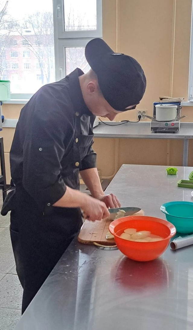 В рамках чемпионата «Профессионалы» по компетенции "Поварское дело" проходит отборочный этап для студентов. Студент Технологического колледжа Иван Шелковский под наставничеством Елены Александровны Китаевой оттачивает мастерство в приготовлении блюд для отборочного этапа. Его задача – безупречно представить десерт "Груша в вине", креативную холодную закуску "Вафли с гарниром из грибов" и "Котлету по-киевски".