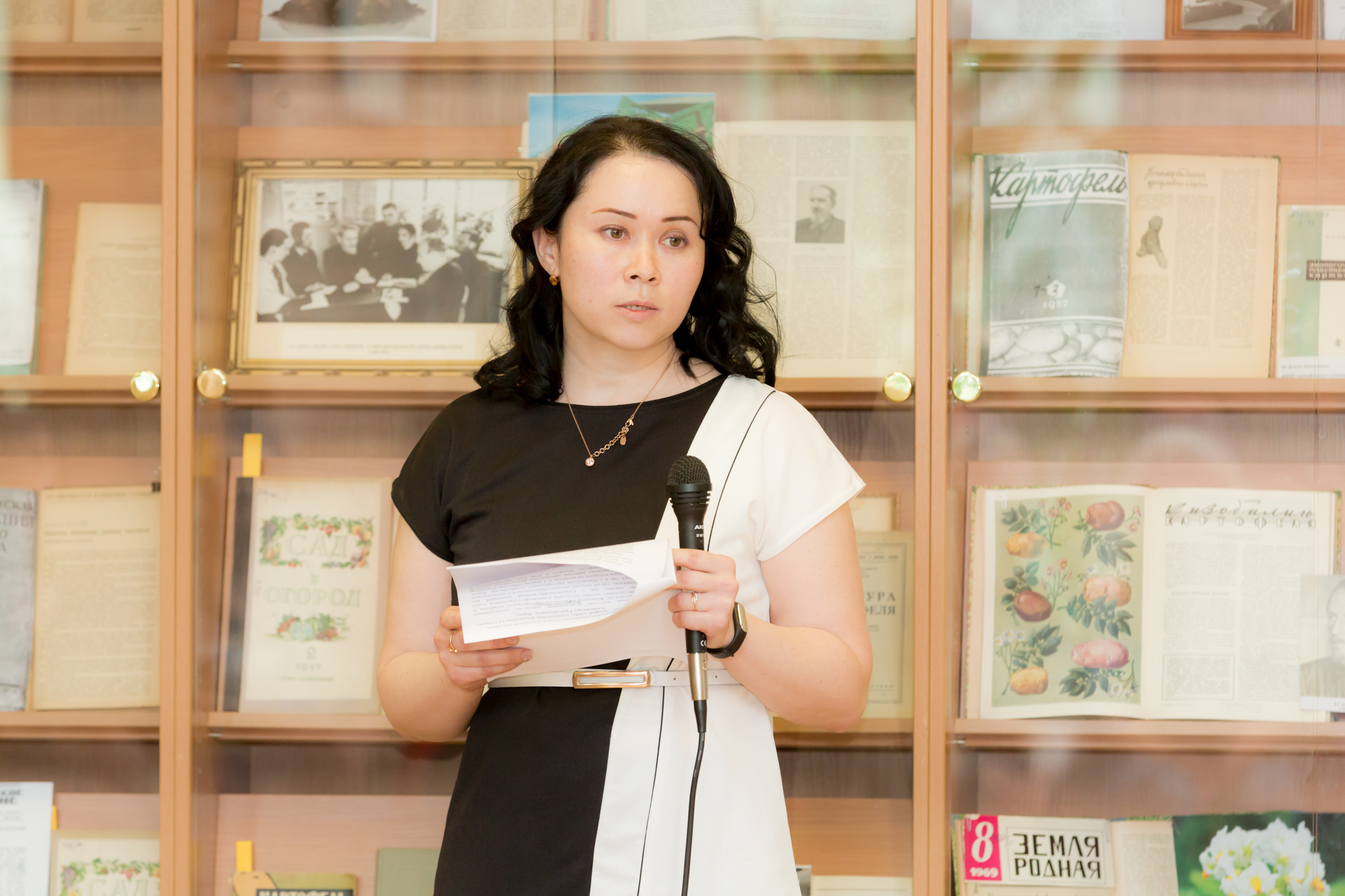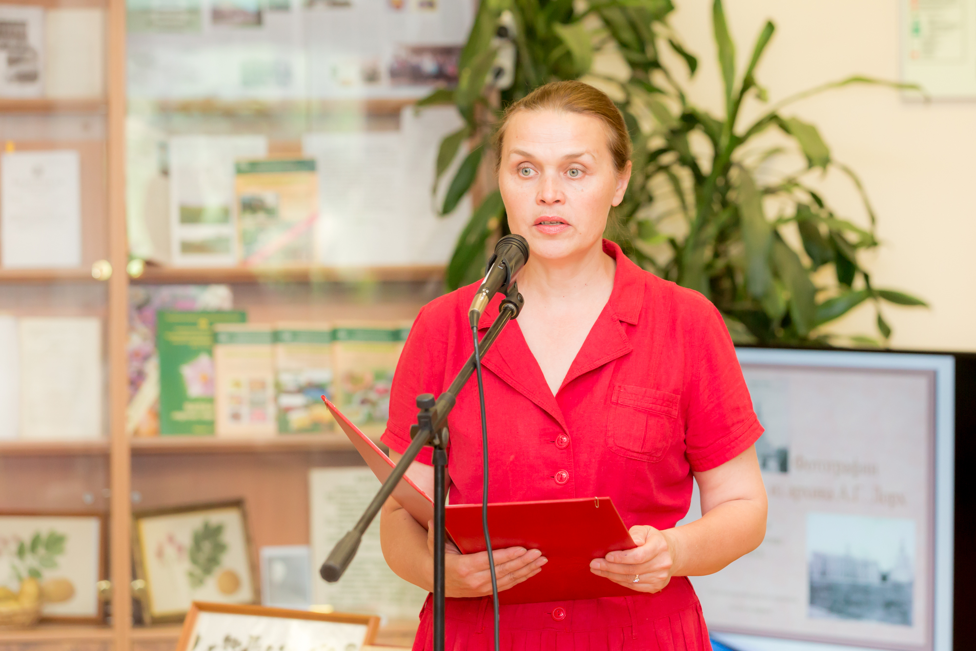 Научный сотрудник Наталия Николаевна Гордиенко познакомила гостей библиотеки с раритетами выставки. Она обратила внимание на первую научную работу ученого об опылении красного клевера, представленную на выставке. И библиотека института, и музей А.Г. Лорха в Коренево принимали самое активное участие в создании экспозиции. Наталия Николаевна поблагодарила директора библиотеки Р.М. Лизакову и О.С. Куриленко за работу по созданию выставки.