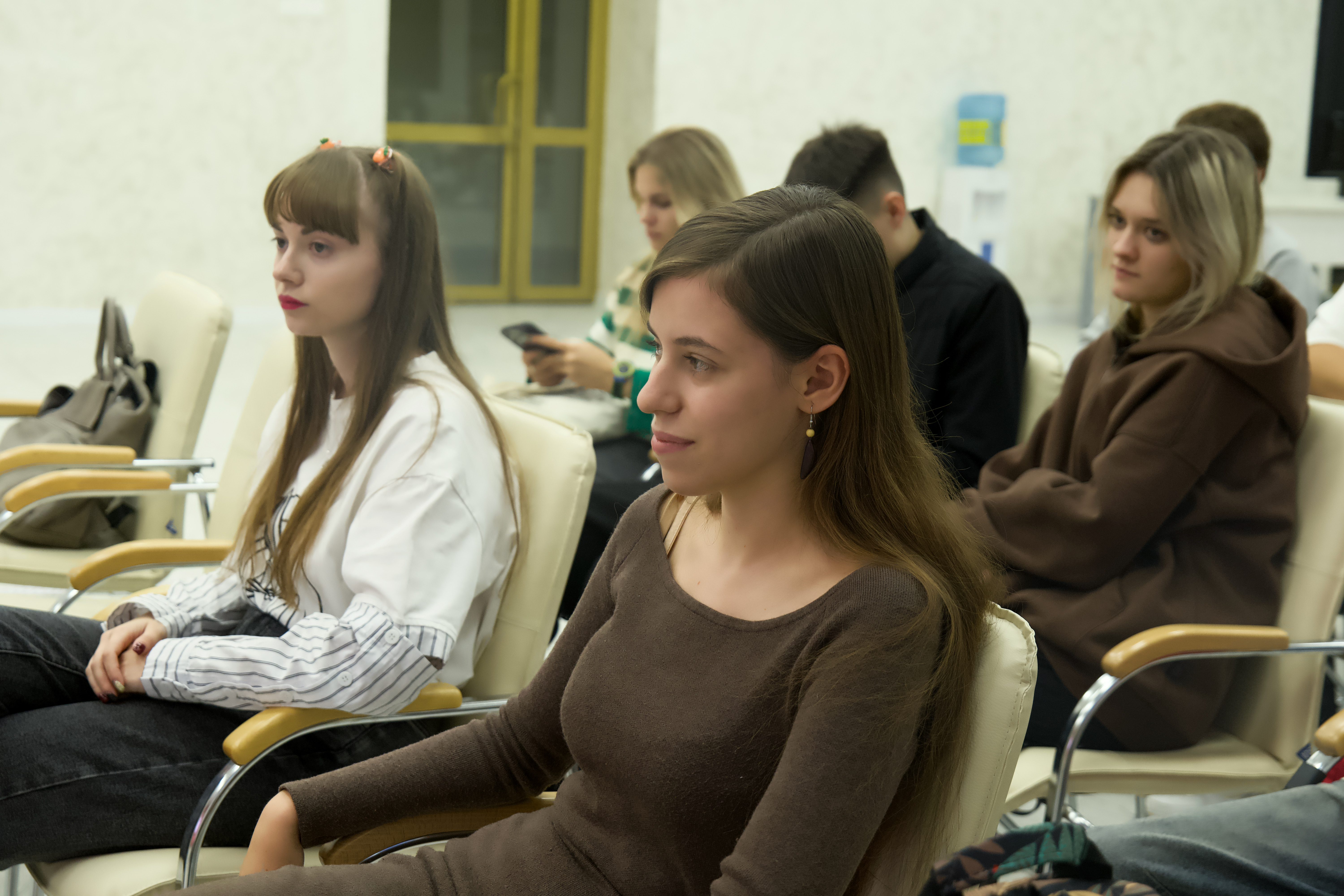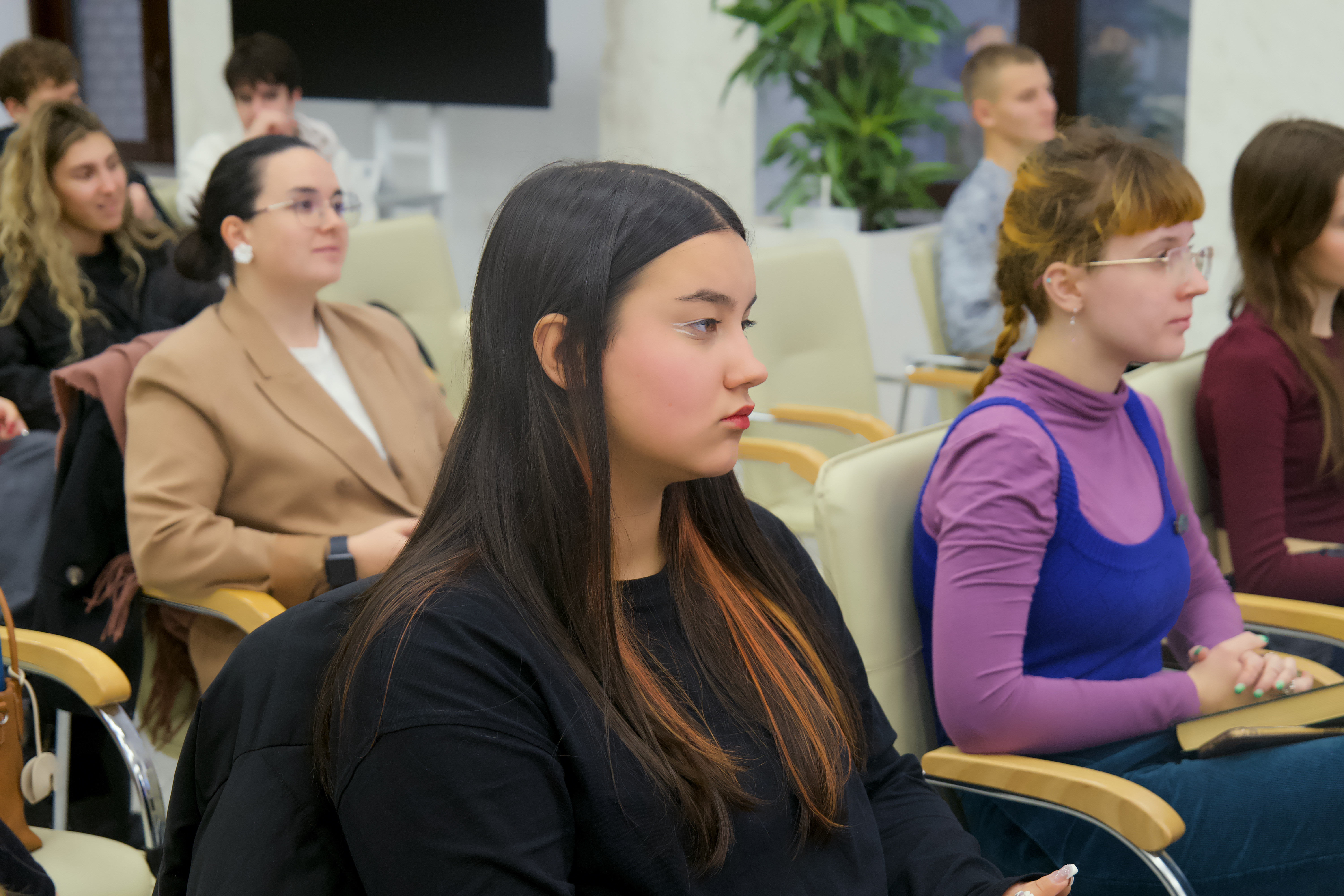 Заседание литературного клуба открыли и.о. заведующего кафедрой связей с общественностью, речевой коммуникации и туризма Евграфова Л.В., преподаватели Синицына М.В., Денисова Е.А., и.о. директора ЦНБ им. Н.И. Железнова Берберов П.А.