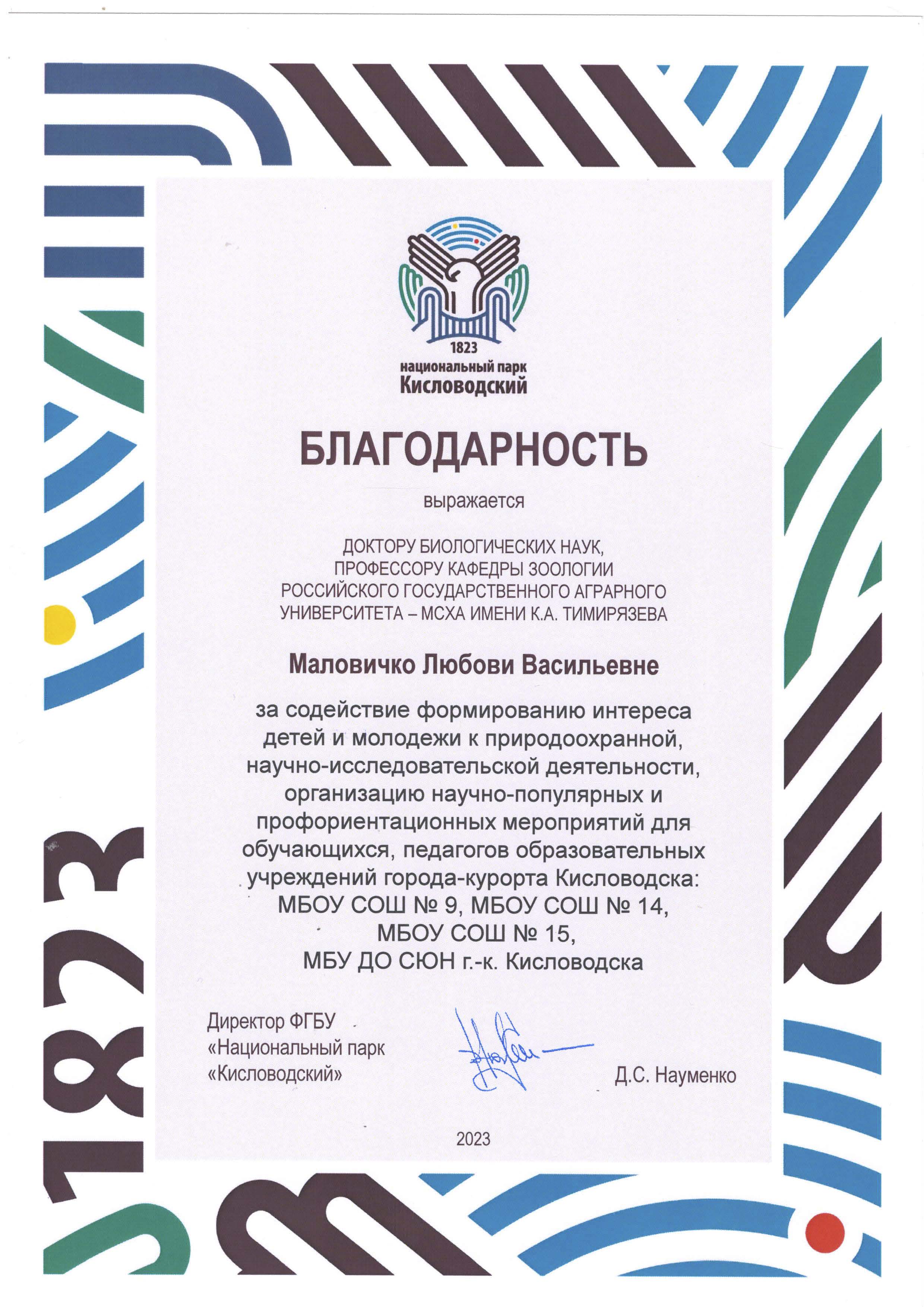 В конференц-зале Визит-центра национального парка «Кисловодский» Любовь Васильевна встретилась с учениками старших классов МБОУ СОШ №14, МБОУ СОШ № 9 и воспитанниками МБУ ДО СЮН г.-к. Кисловодска. Ребята с интересом просмотрели видеоролик о Российском государственном аграрном университете – МСХА имени К.А. Тимирязева – старейшем и всемирно известном высшем учебном заведении России. В формате научно-познавательной лекции Любовь Васильевна познакомила ребят с разнообразием хищных птиц нашей страны, причинами сокращения численности многих уязвимых видов и мероприятиями, предпринимаемыми для их охраны.